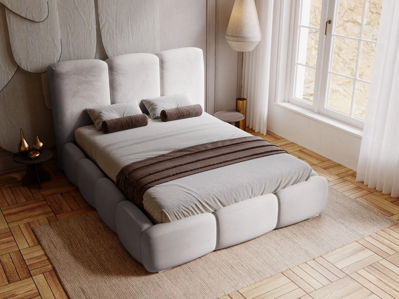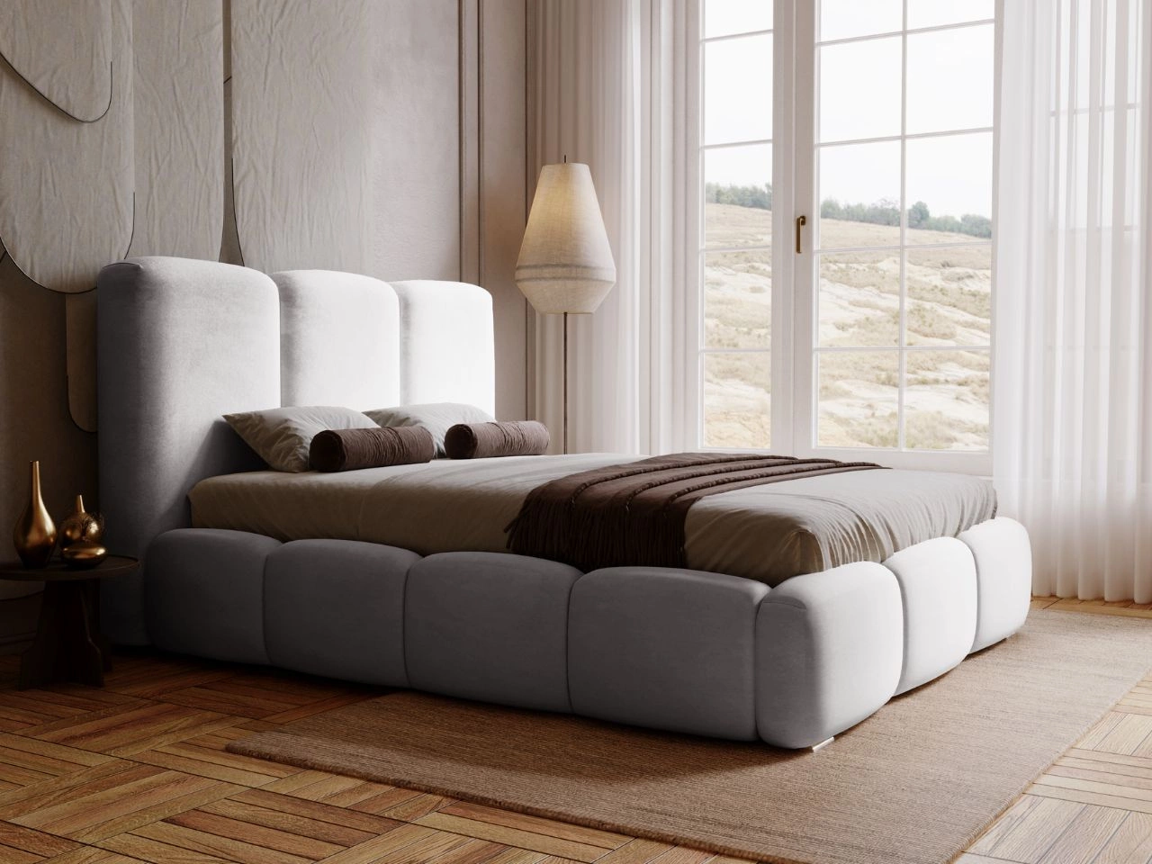 Łóżko tapicerowane Bubble to mebel, który natychmiast przyciąga uwagę swoim nowoczesnym designem i niezwykłym komfortem. Idealnie dopasowuje się zarówno do małych, jak i przestronnych sypialni. Łączy w sobie styl i funkcjonalność – jest nie tylko estetyczne, ale także niezwykle praktyczne.