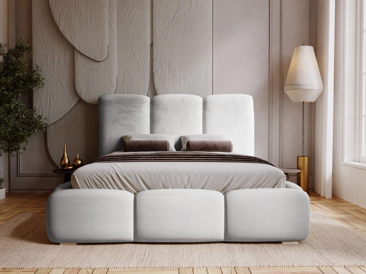 Miękka tkanina welurowa, którą pokryte jest łóżko, nadaje sypialni luksusowy i przytulny charakter. Wybierając łóżko Bubble, decydujesz się na harmonijne połączenie komfortu, trwałości i nowoczesnego stylu.