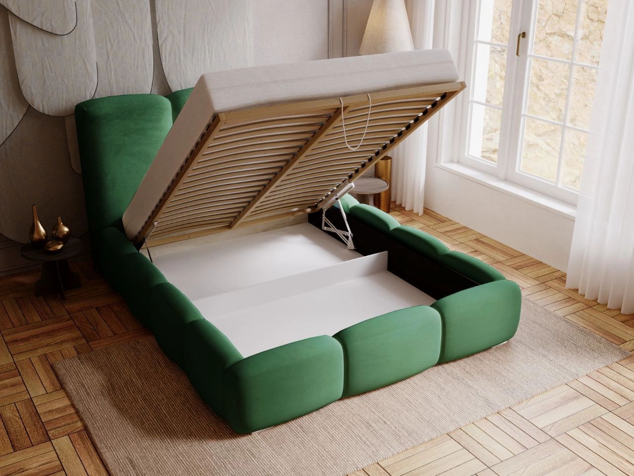Łóżko tapicerowane z pojemnikiem i stelażem 180x200 cm Bubble Zielone