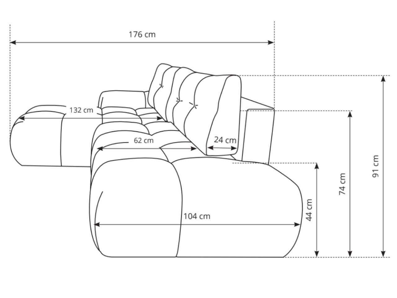 Miękkie poduszki oparciowe, wypełnione silikonem, gwarantują wysoki komfort codziennego użytkowania i idealne warunki do relaksu. Elegancki narożnik Sile wyposażony jest w praktyczny mechanizm DL, który umożliwia szybkie i łatwe rozłożenie mebla, przekształcając go w wygodne łóżko – idealne zarówno na wieczorne spotkania z gośćmi, jak i spontaniczny odpoczynek. Dodatkowo pojemnik na pościel zapewnia wygodne miejsce do przechowywania i pomaga utrzymać porządek w salonie.