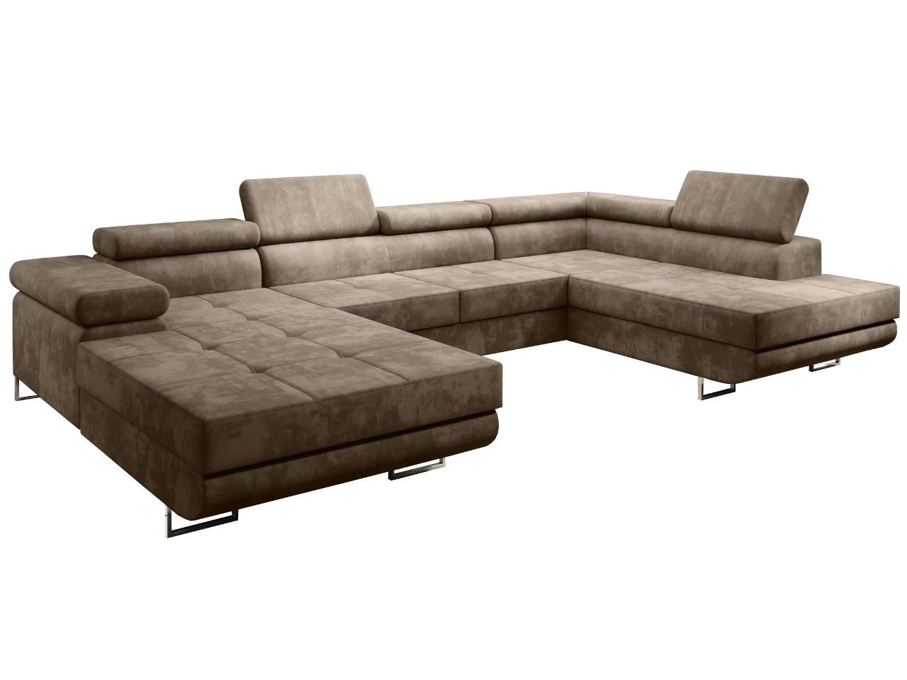 Narożnik U prawy z funkcją spania i pojemnikiem Solam U Brązowy