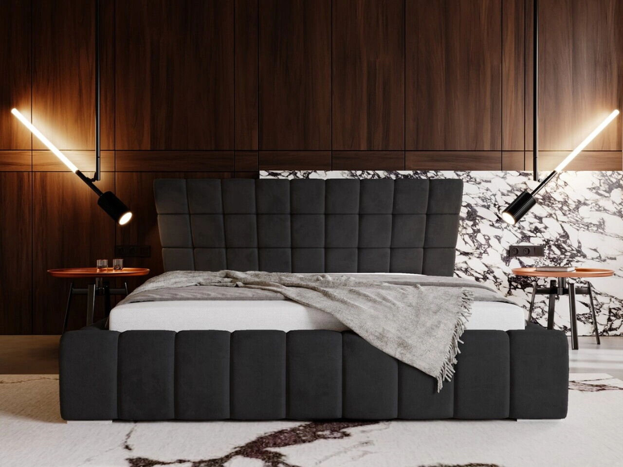 Łóżko Paris to nie tylko miejsce do odpoczynku, ale również centralny punkt eleganckiej sypialni. Jego harmonijne połączenie luksusowej tkaniny, pikowanych detali oraz wysokiej jakości materiałów sprawia, że wnętrze nabiera wyjątkowego, ekskluzywnego charakteru. Jest to idealna propozycja dla osób, które pragną połączyć komfort, nowoczesność i elegancję w jednym meblu.
