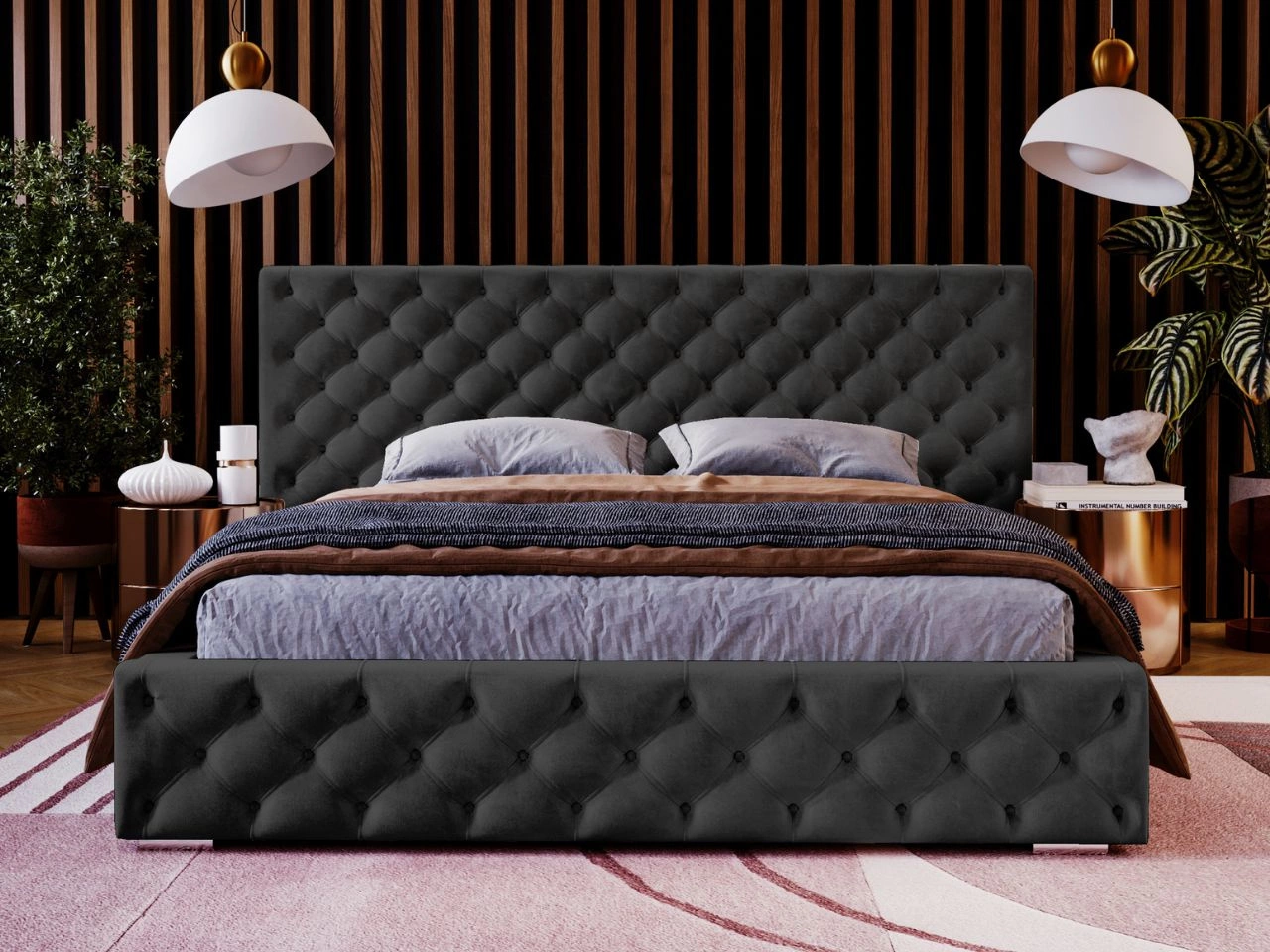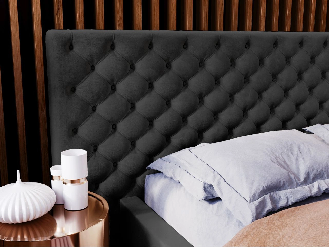 Zainspirowane stylem glamour, łóżko Chesterfield Madera wyróżnia się licznymi zdobieniami i detalami. Głębokie pikowania dodają mu niepowtarzalnego uroku, czyniąc je centralnym punktem każdej sypialni. Podwójne łóżko Madera charakteryzuje się również wysokim wezgłowiem, które nadaje mu solidność i wyjątkowy charakter. Liczne przeszycia i pikowania dodają mu elegancji, doskonale pasując do wnętrz w stylu glamour. Łóżko wyposażone jest w pojemny pojemnik na pościel, co zapewnia dużo miejsca do przechowywania.