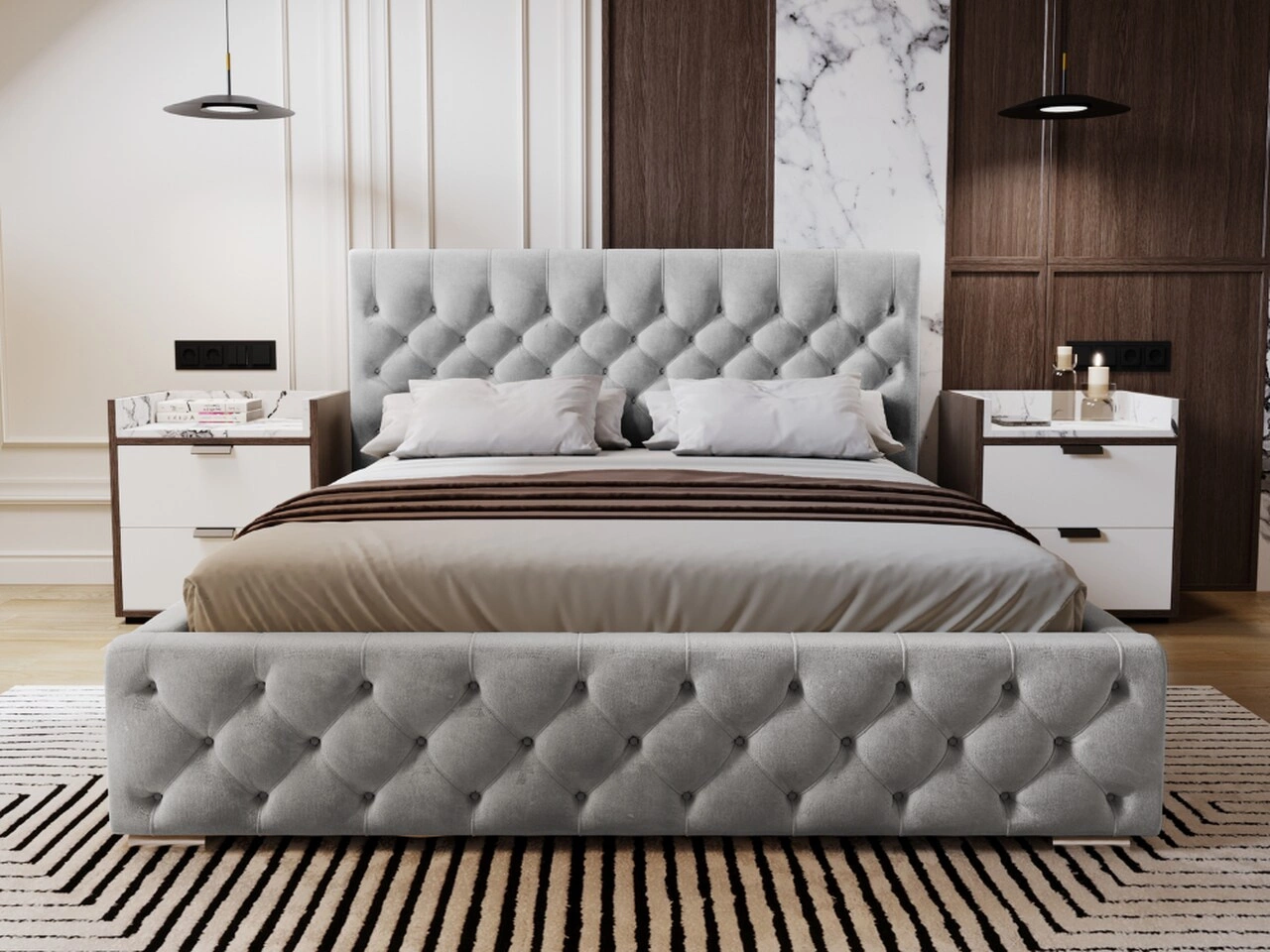Łóżko tapicerowane z pojemnikiem i stelażem 180x200 Velutto Jasny szary