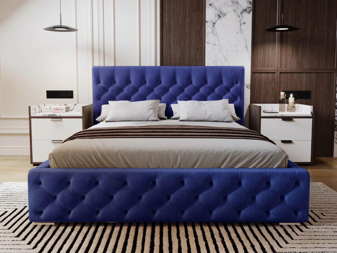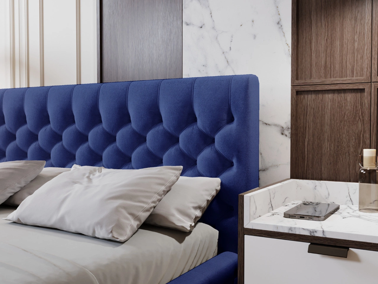 Łóżko tapicerowane z pojemnikiem i stelażem 180x200 Velutto Niebieski