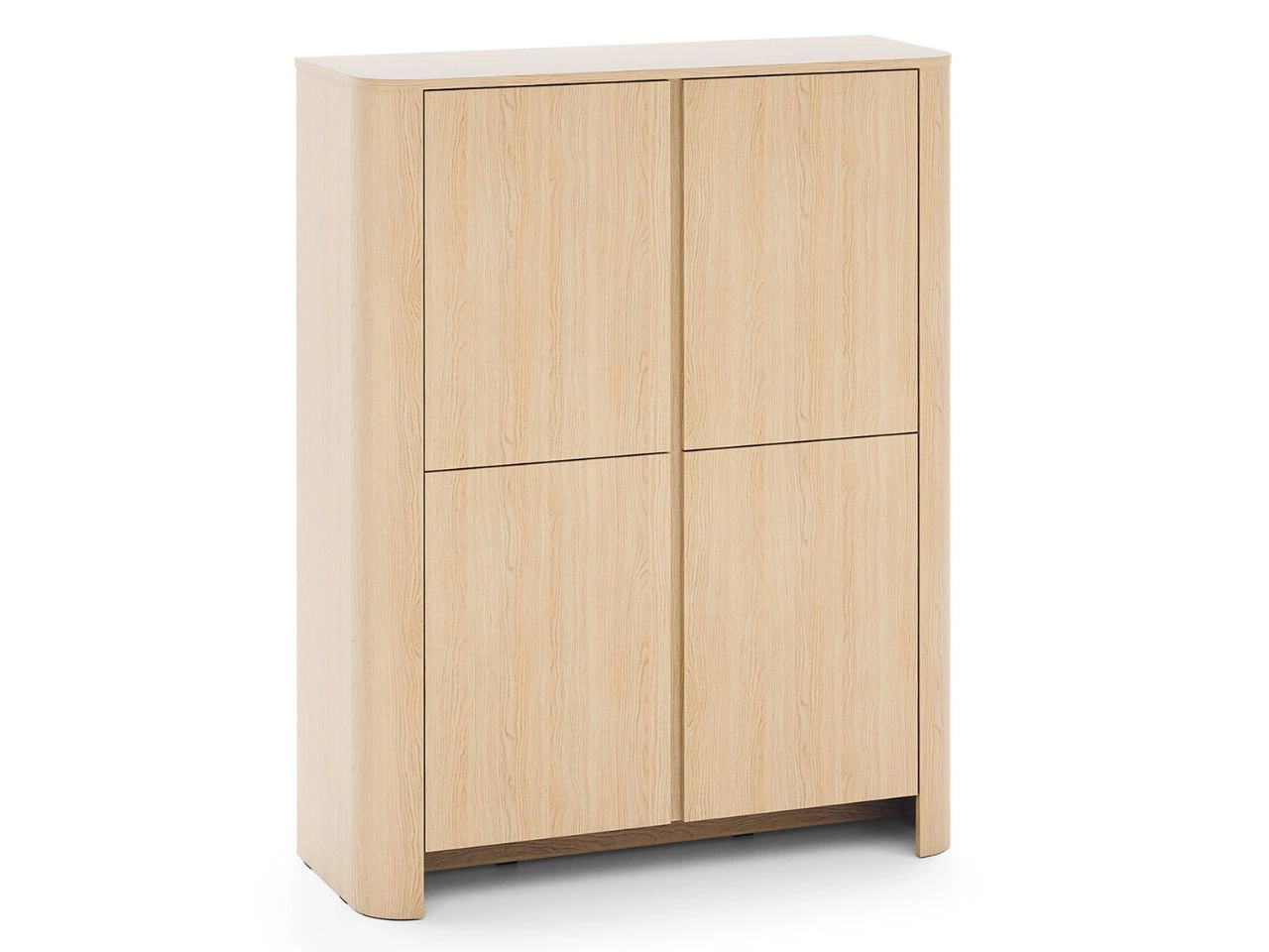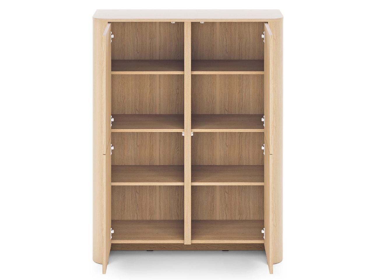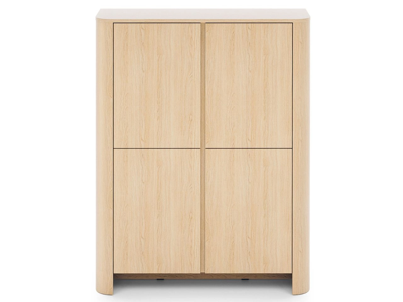 Komoda czterodrzwiowa Brillo to propozycja dla osób, które chcą połączyć nowoczesną estetykę z wysoką funkcjonalnością. W wybarwieniu dąb Vicenza prezentuje się wyjątkowo naturalnie i ciepło, tworząc przytulną, elegancką bazę dla wielu stylów aranżacyjnych – od współczesnych po bardziej klasyczne. Cztery fronty otwierane w systemie push to open skrywają przestronne półki, zapewniając praktyczne miejsce na przechowywanie akcesoriów, tekstyliów czy dekoracji. Brak uchwytów nadaje meblowi minimalistyczny, uporządkowany wygląd, który świetnie wpisuje się w nowoczesne wnętrza.