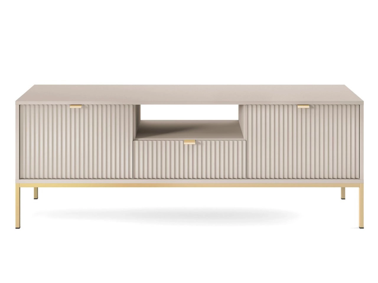 Szafka RTV pod telewizor z szufladami i drzwiczkami Amber Kaszmir na złotych nogach