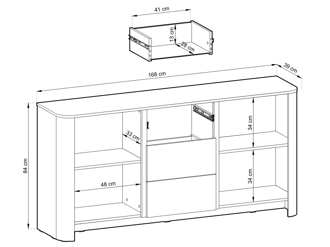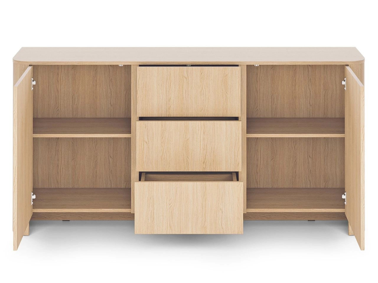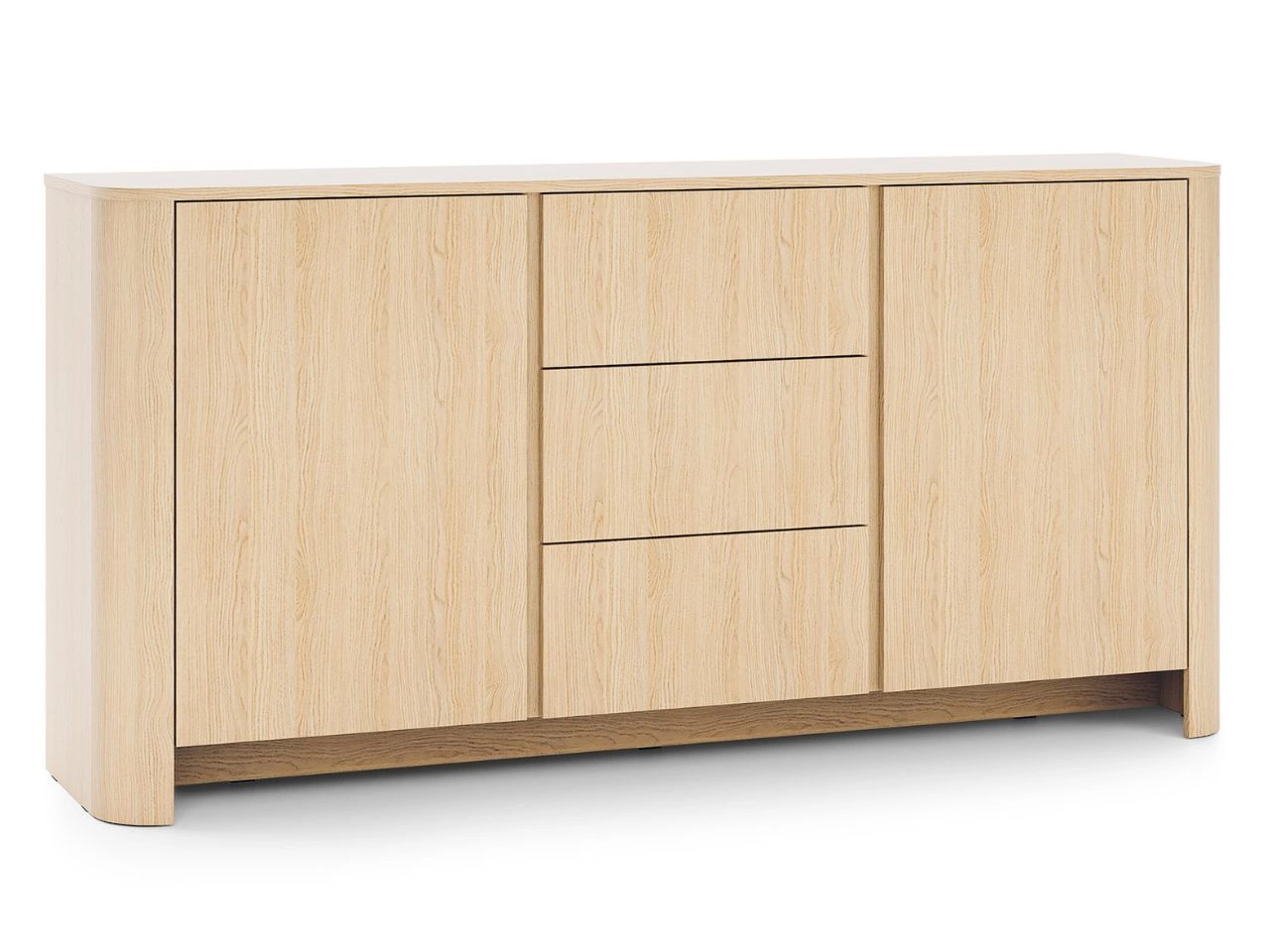 Komoda z szufladami Brillo to nowoczesna komoda do salonu, która łączy funkcjonalność z eleganckim designem, świetnie sprawdzając się również jako komoda do sypialni czy stylowe wyposażenie przedpokoju. Dwa fronty ukrywające pojemne półki oraz trzy praktyczne szuflady oferują wiele miejsca na przechowywanie, dzięki czemu łatwo utrzymasz porządek w codziennym użytkowaniu. Zastosowany system push to open zapewnia wygodne, lekkie i ciche otwieranie, nadając meblowi minimalistyczny wygląd pozbawiony uchwytów — idealny dla osób ceniących nowoczesne meble do salonu.