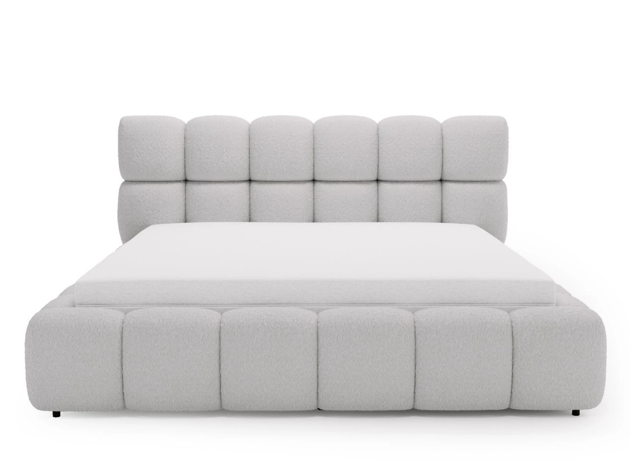 Dobierasz do: Łóżko tapicerowane z pojemnikiem na pościel i stelażem 120x200 Modo w tkaninie bouclé Szare