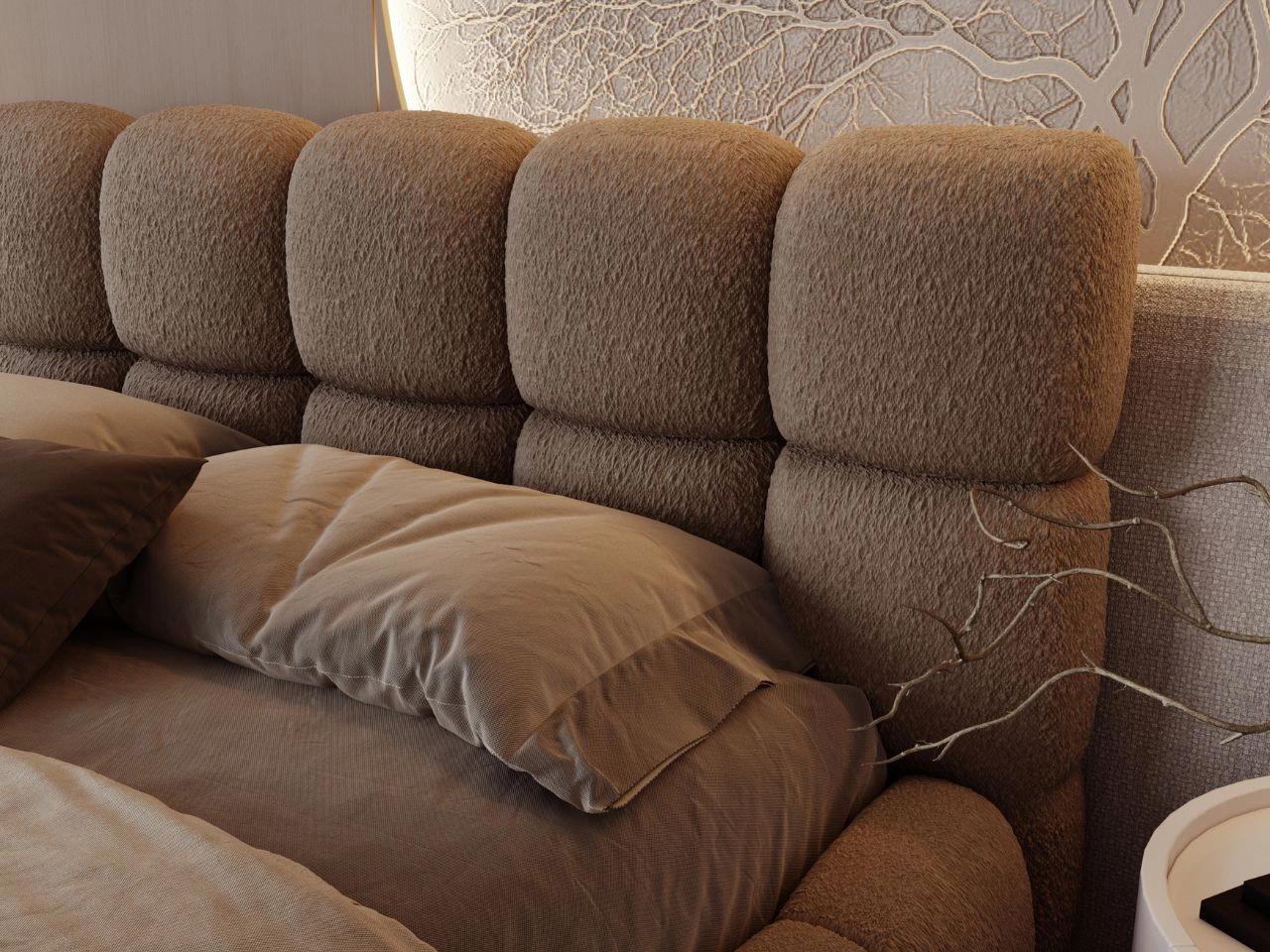 Łóżko Modo zostało obite tkaniną Anthology z grupy materiałów bouclé, wyróżniającą się pętelkową strukturą i delikatnie nieregularną fakturą. Materiał jest nie tylko efektowny wizualnie, ale również miękki i przyjemny w dotyku. Dzięki wysokiej odporności na ścieranie, tapicerka ta gwarantuje wieloletnią trwałość i zachowanie estetycznego wyglądu przez bardzo długi czas.