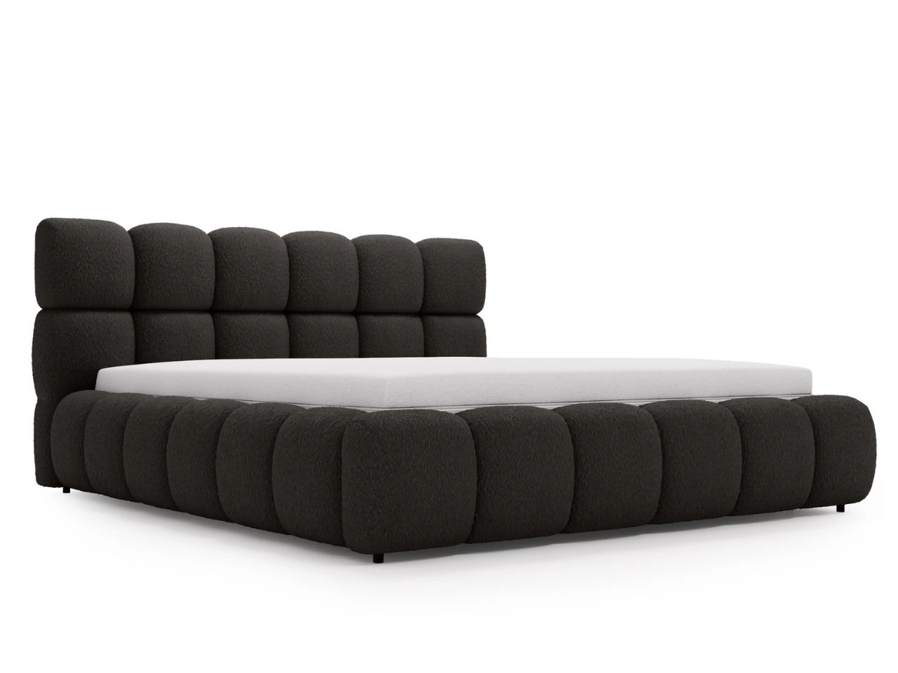Dobierasz do: Łóżko tapicerowane z pojemnikiem na pościel i stelażem 200x200 Modo w tkaninie bouclé Czarne