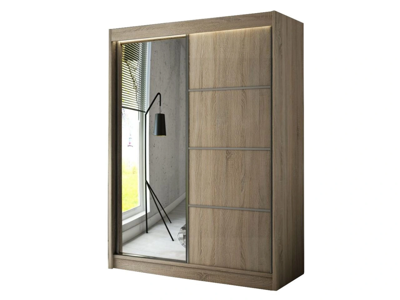 Szafa przesuwna z lustrem 150 cm z oświetleniem LED Portel Dąb Sonoma