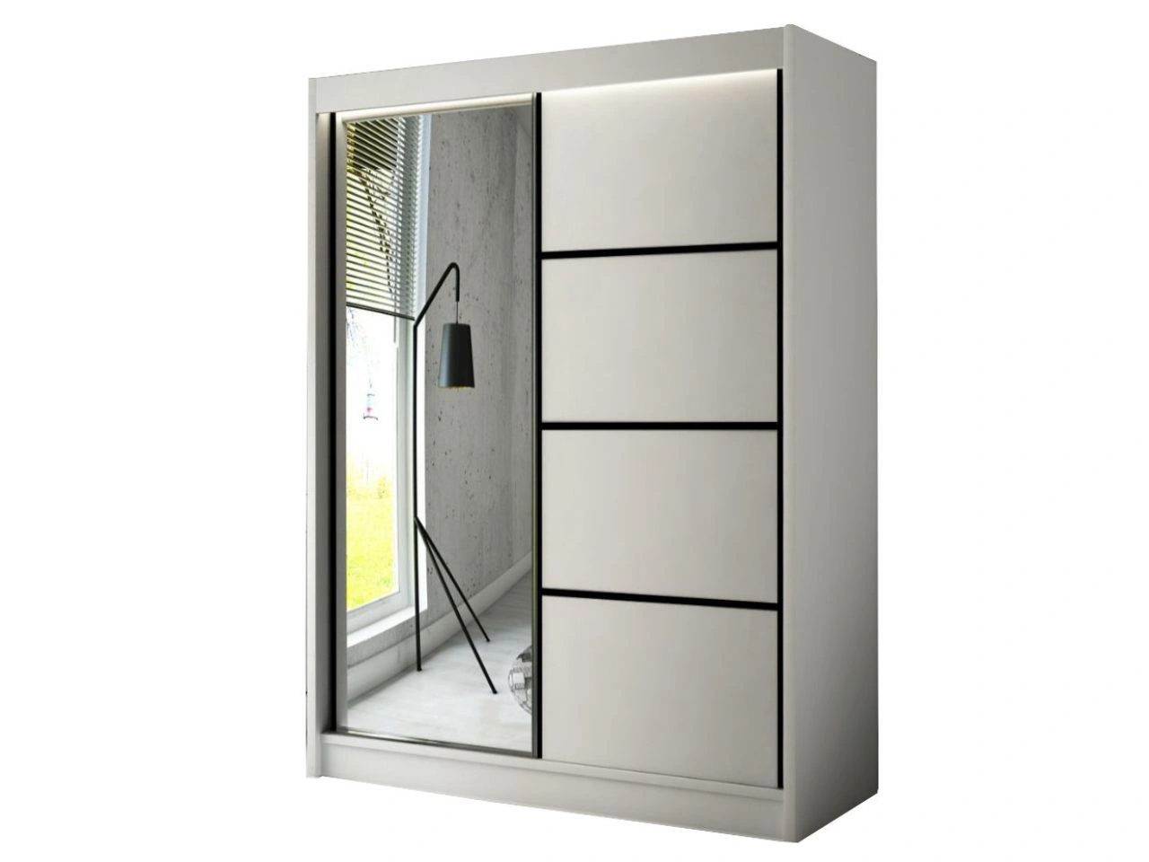 Szafa przesuwna z lustrem 150 cm z oświetleniem LED Portel Biała