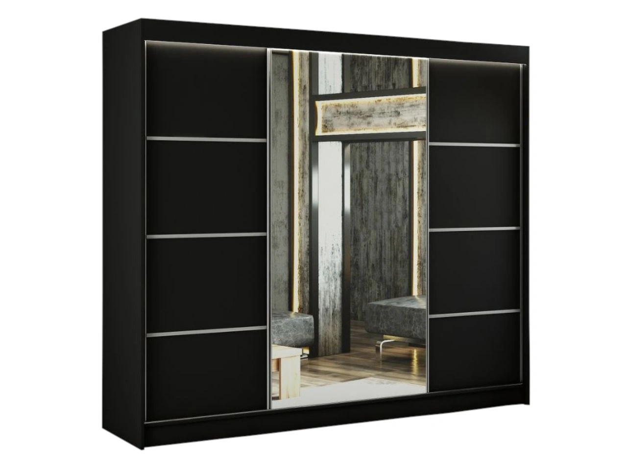 Szafa przesuwna z lustrem 250 cm z oświetleniem LED Portel Czarna