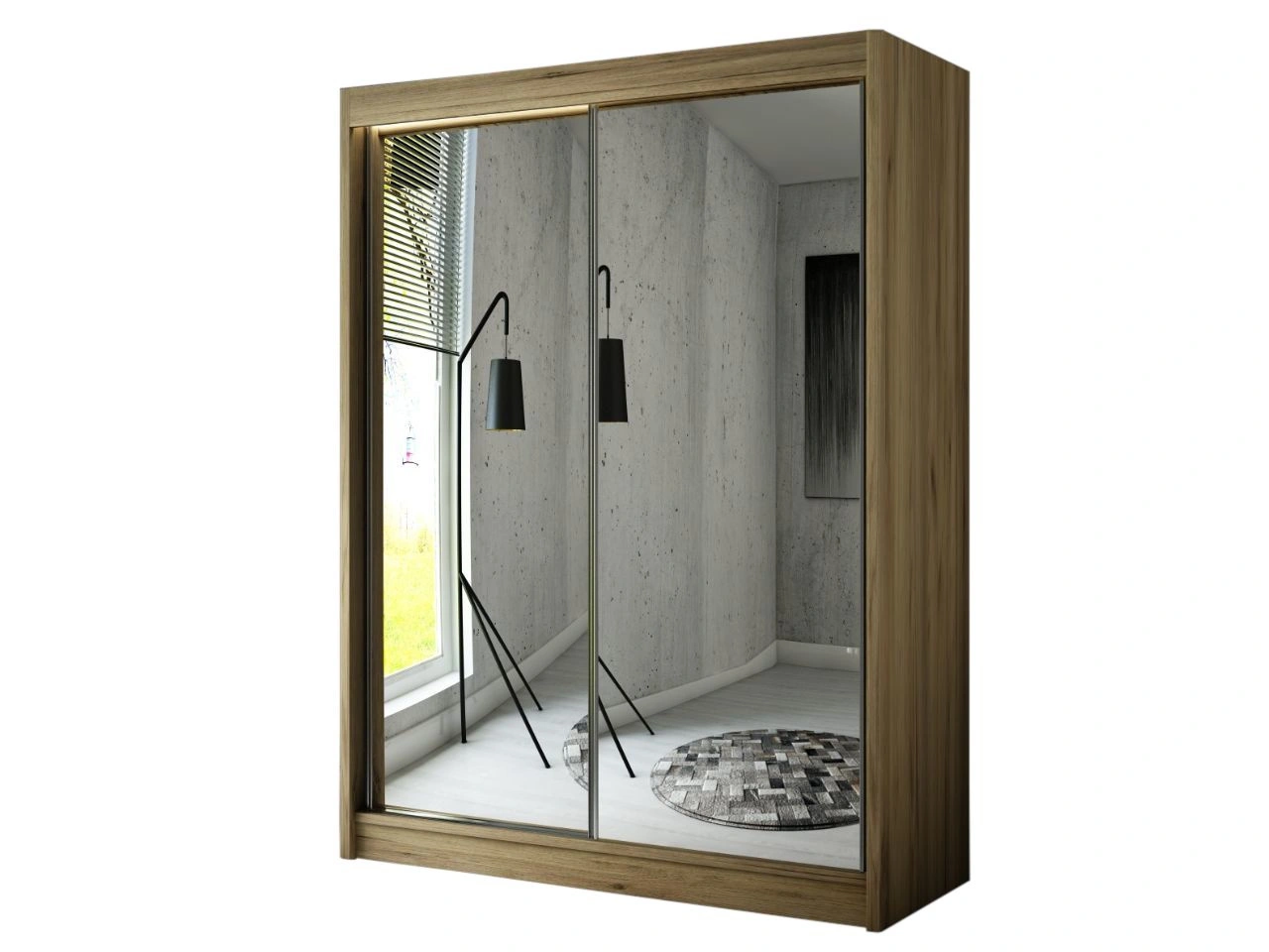 Szafa przesuwna Luzio to nowoczesny i funkcjonalny mebel do sypialni, garderoby lub przedpokoju. Prosta bryła w połączeniu z lustrzanymi frontami optycznie powiększa przestrzeń i nadaje wnętrzu elegancki, uporządkowany charakter.