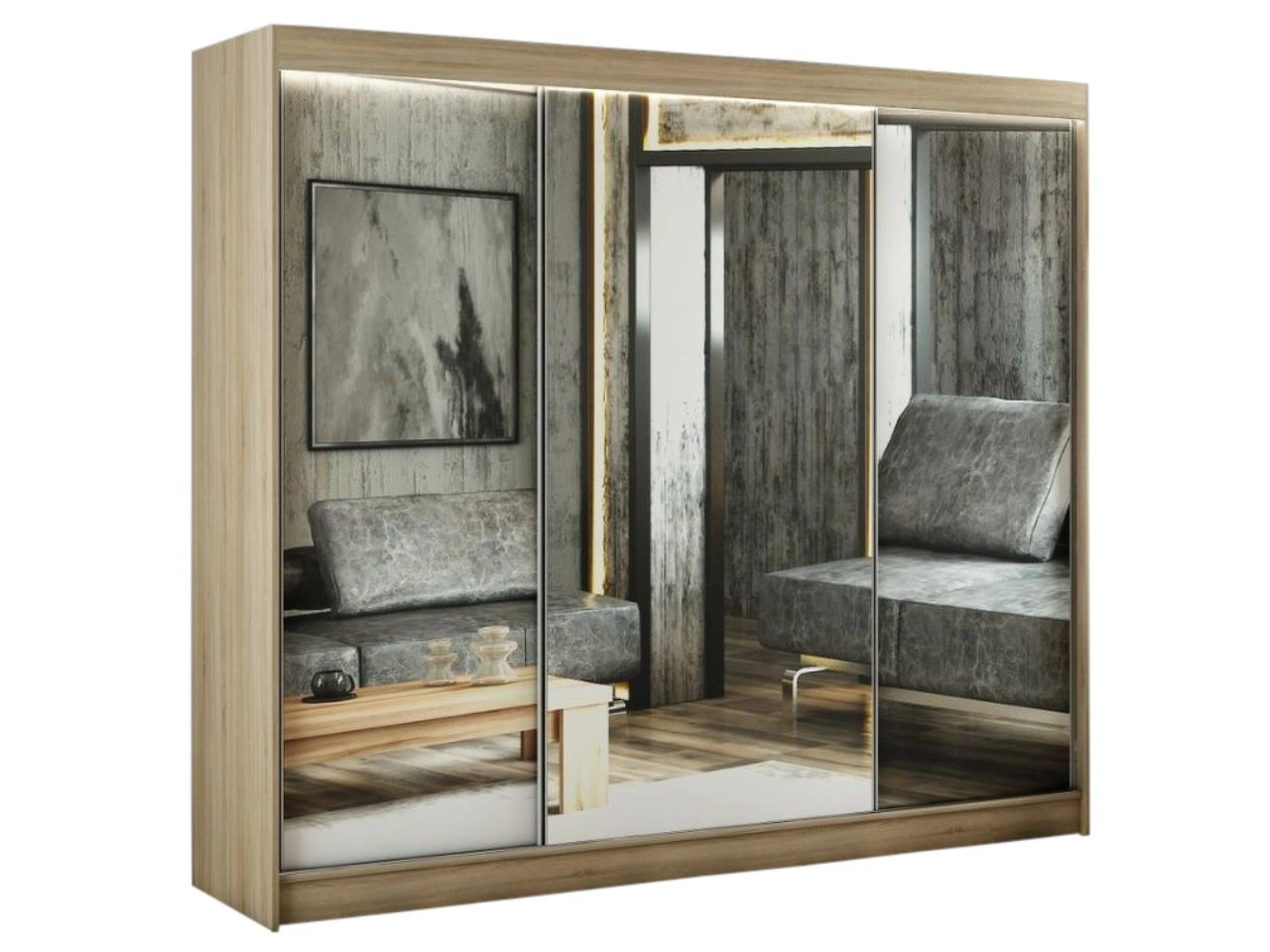 Szafa przesuwna 250 cm z lustrem i oświetleniem LED Luzio Dąb Sonoma