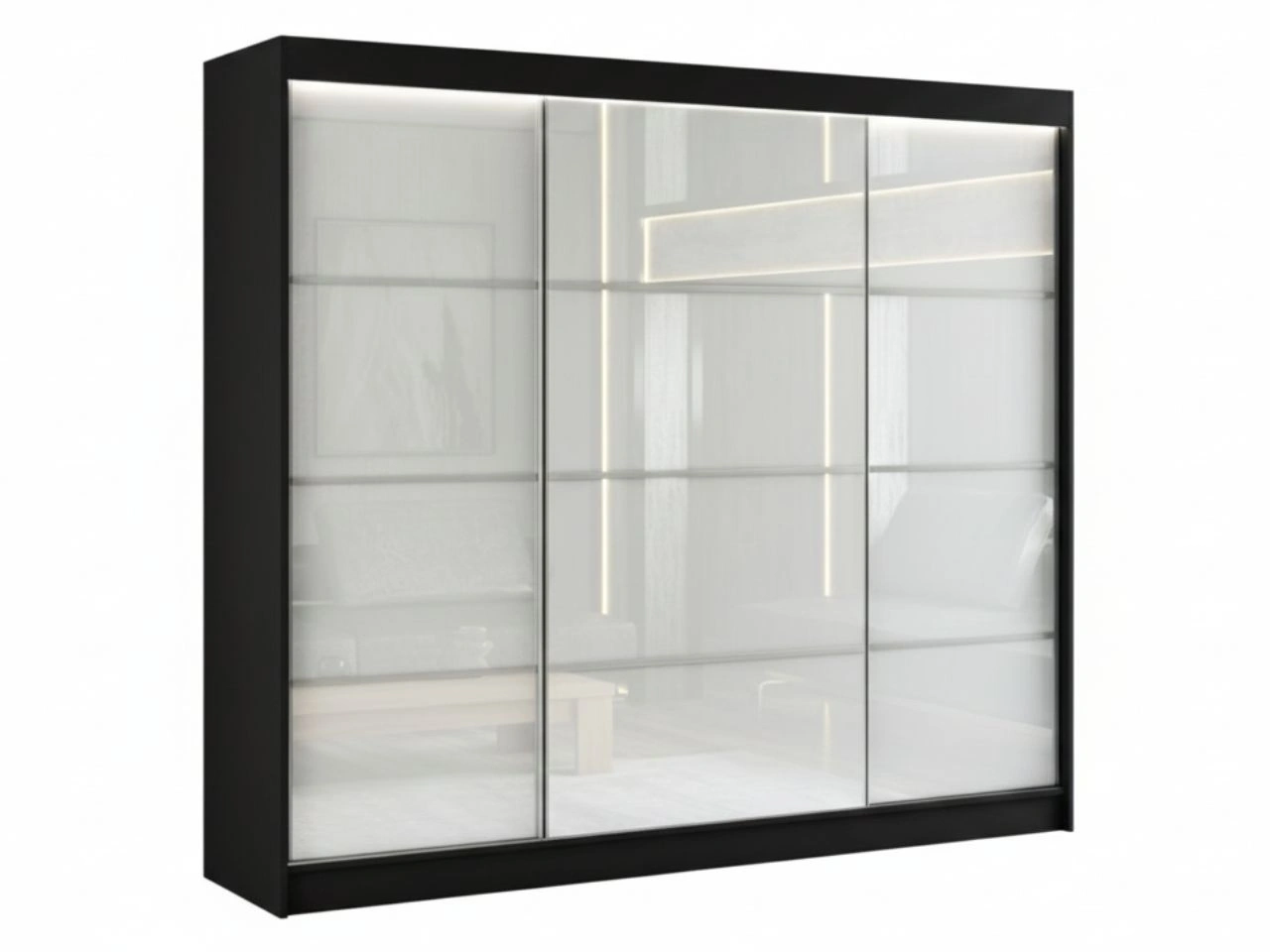 Szafa przesuwna ze szprosami 250 cm z oświetleniem LED Ponti Czarna, Biała