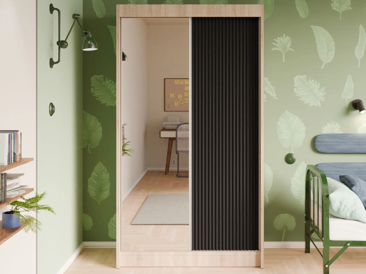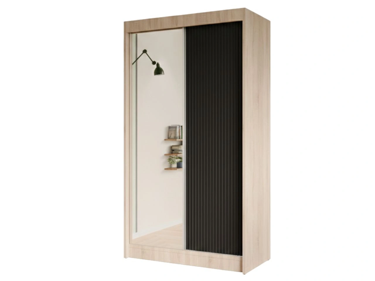 Dobierasz do: Szafa przesuwna z ryflowanym frontem i lustrem 120 cm Fano Dąb Sonoma, Czarna