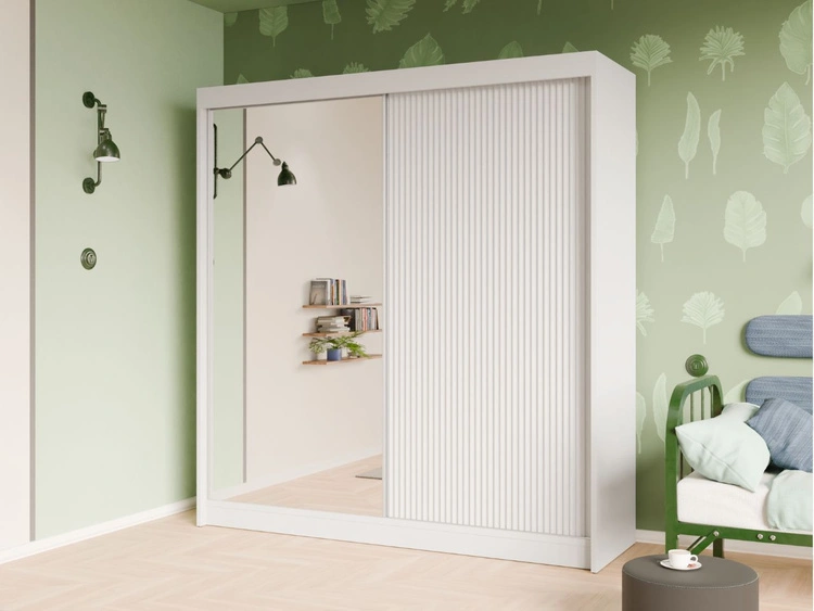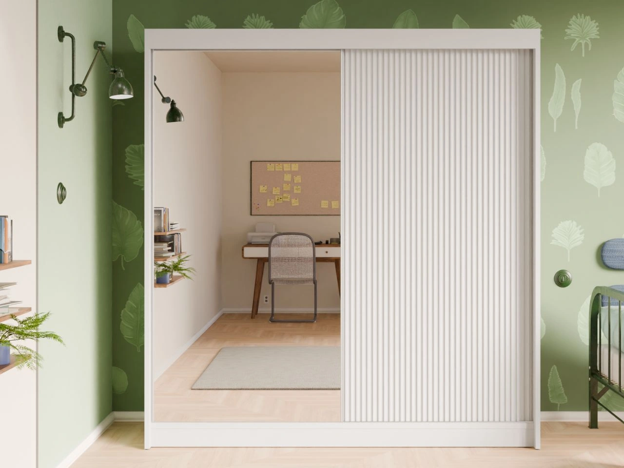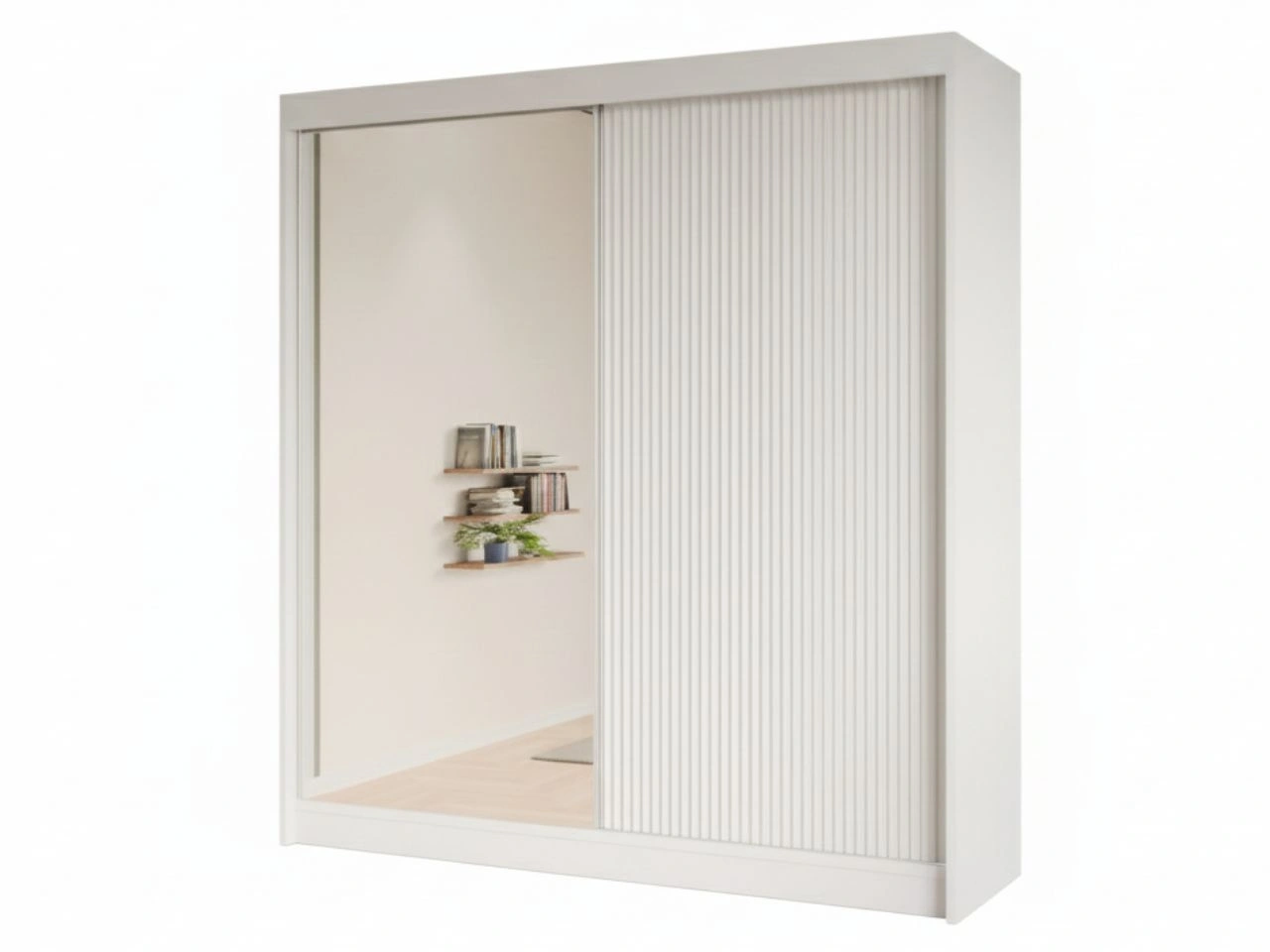 Szafa przesuwna z ryflowanym frontem i lustrem 200 cm Fano Biała