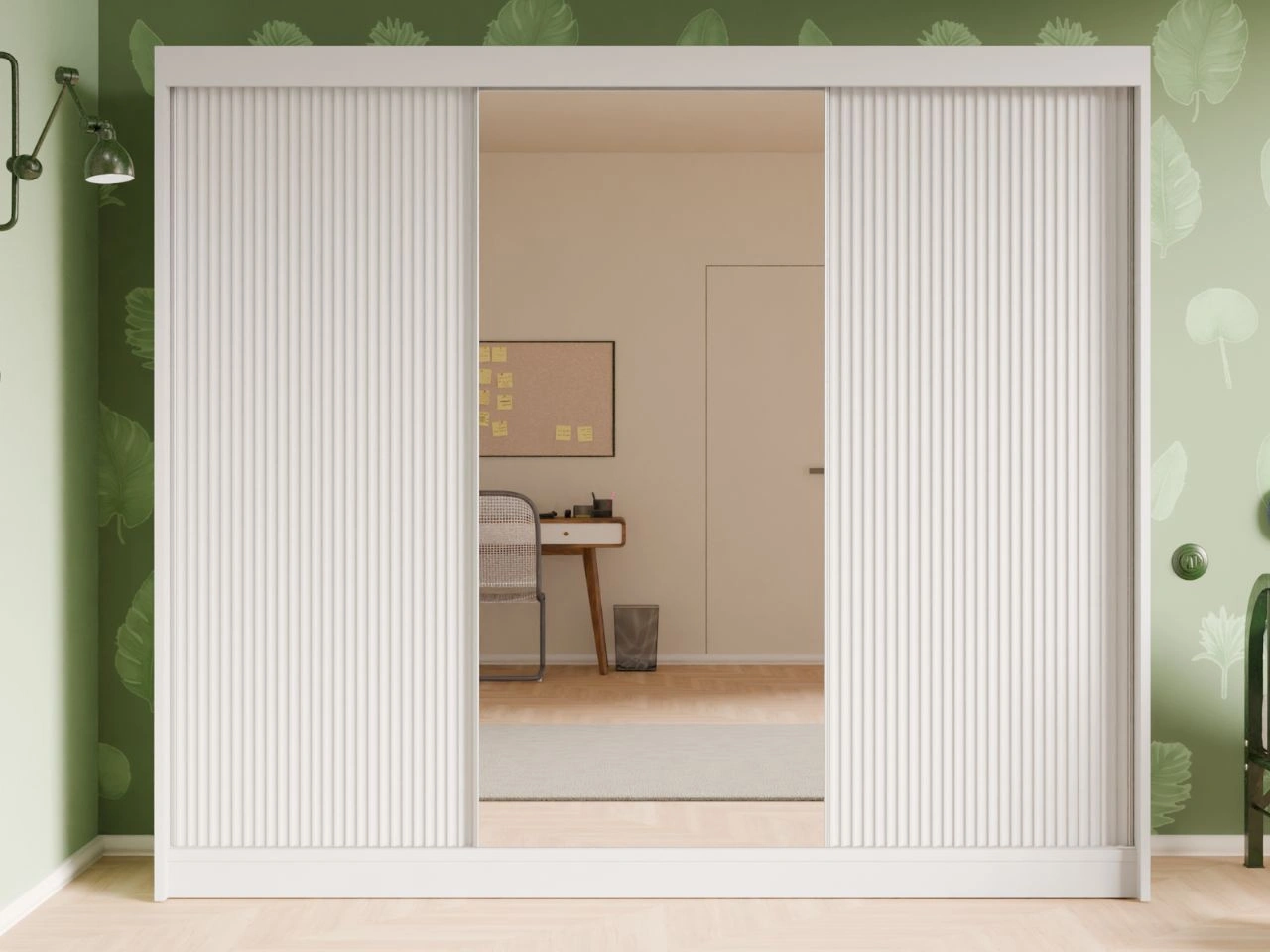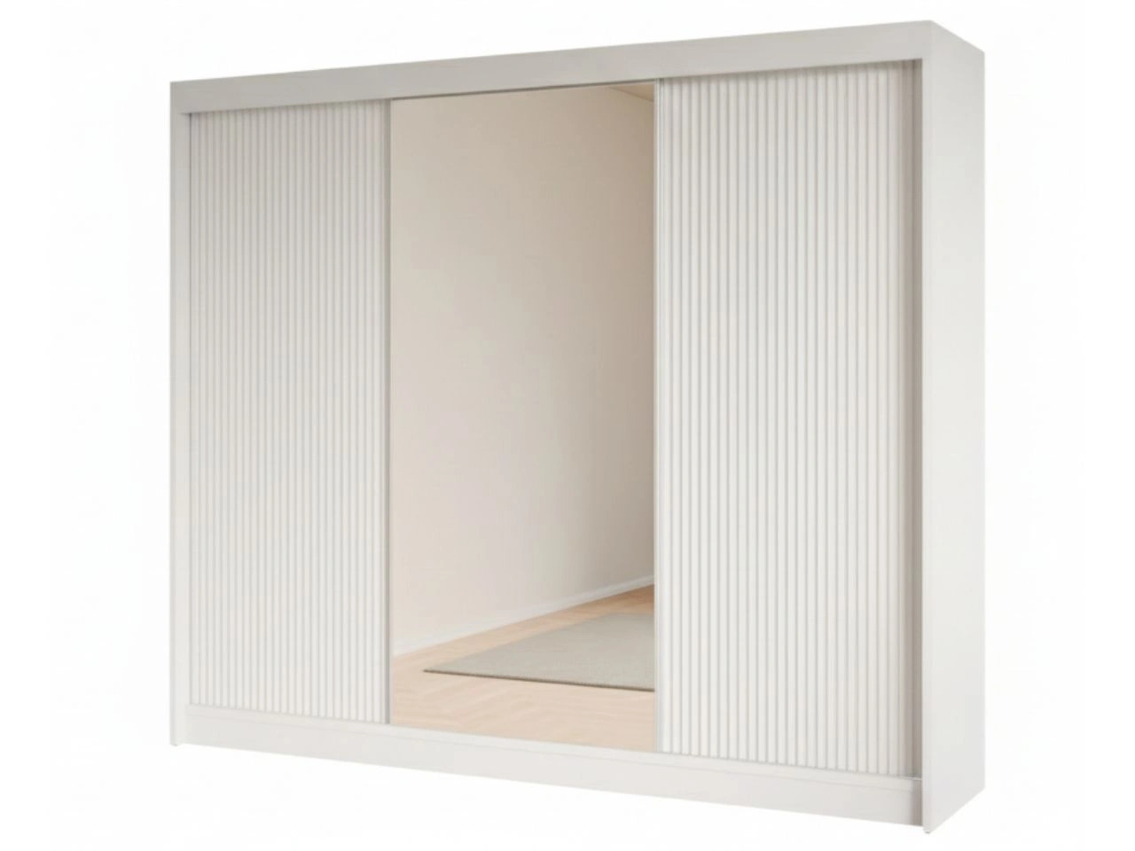Szafa przesuwna z ryflowanym frontem i lustrem 250 cm Fano Biała