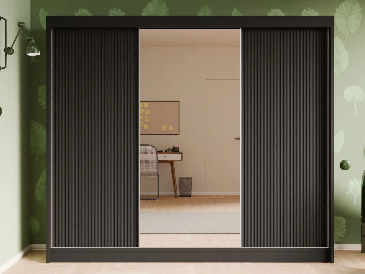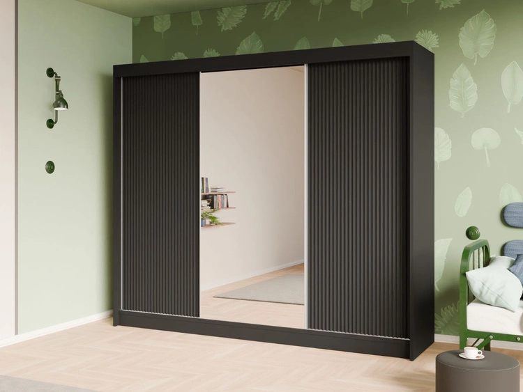Szafa przesuwna z ryflowanym frontem i lustrem 250 cm Fano Czarna