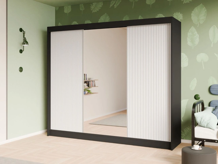 Szafa przesuwna z ryflowanym frontem i lustrem 250 cm Fano Czarna, Biała