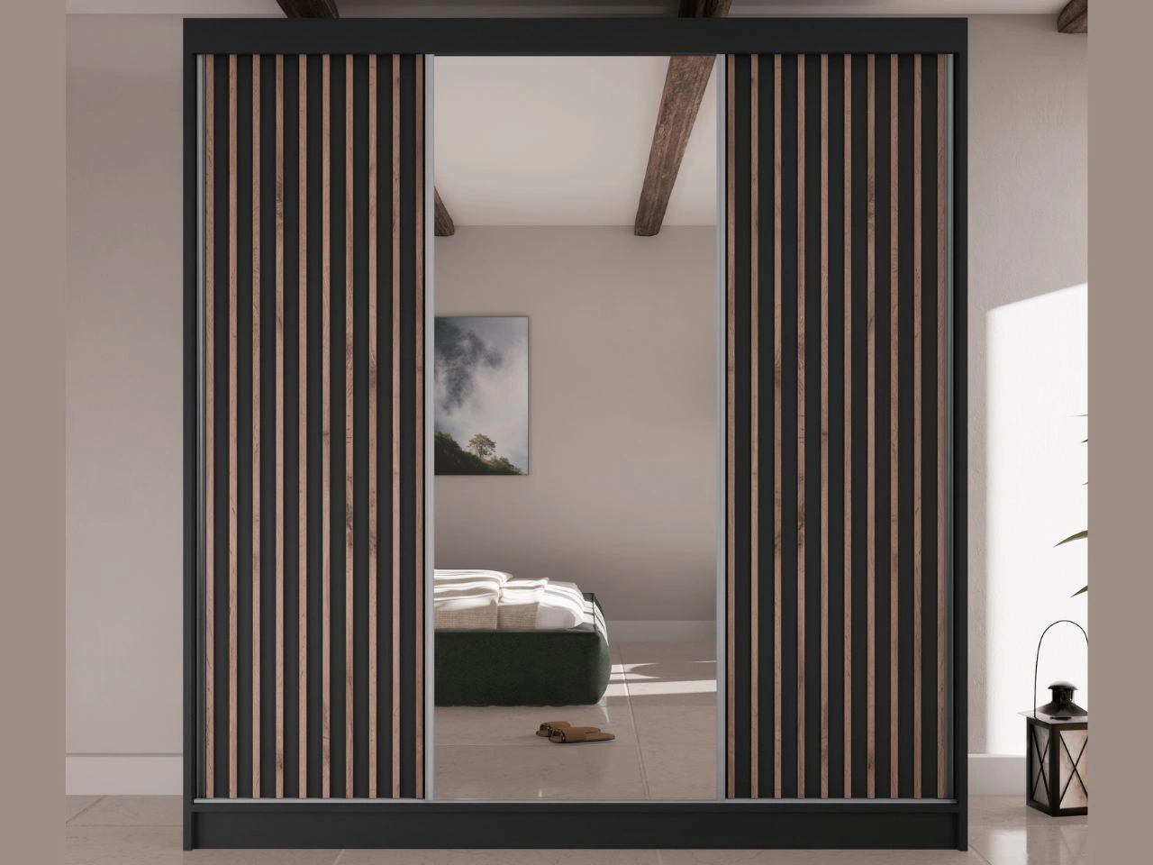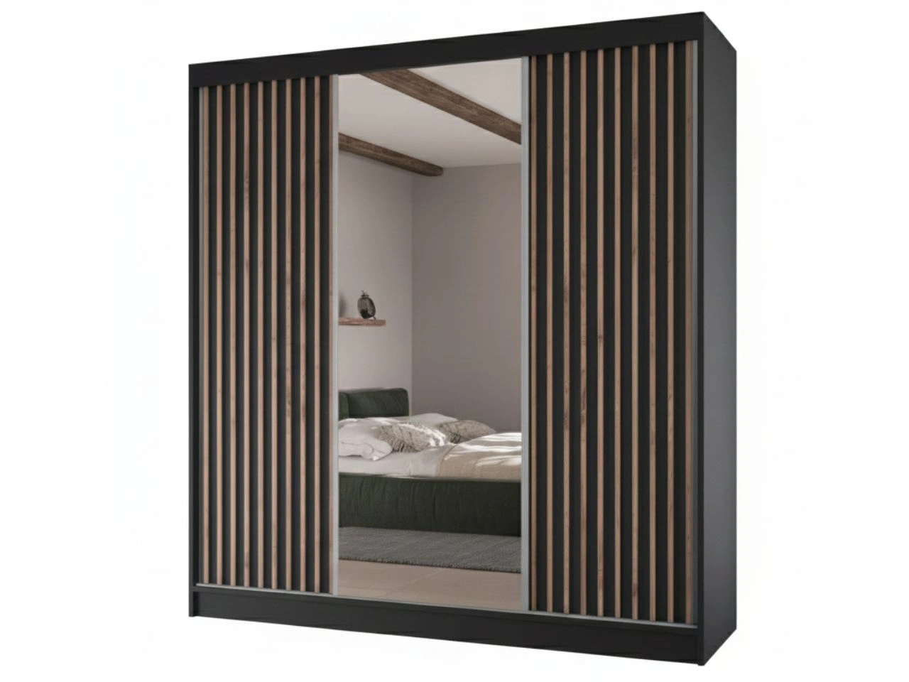 Szafa przesuwna z lamelami i lustrem 200 cm Lucena Czarna