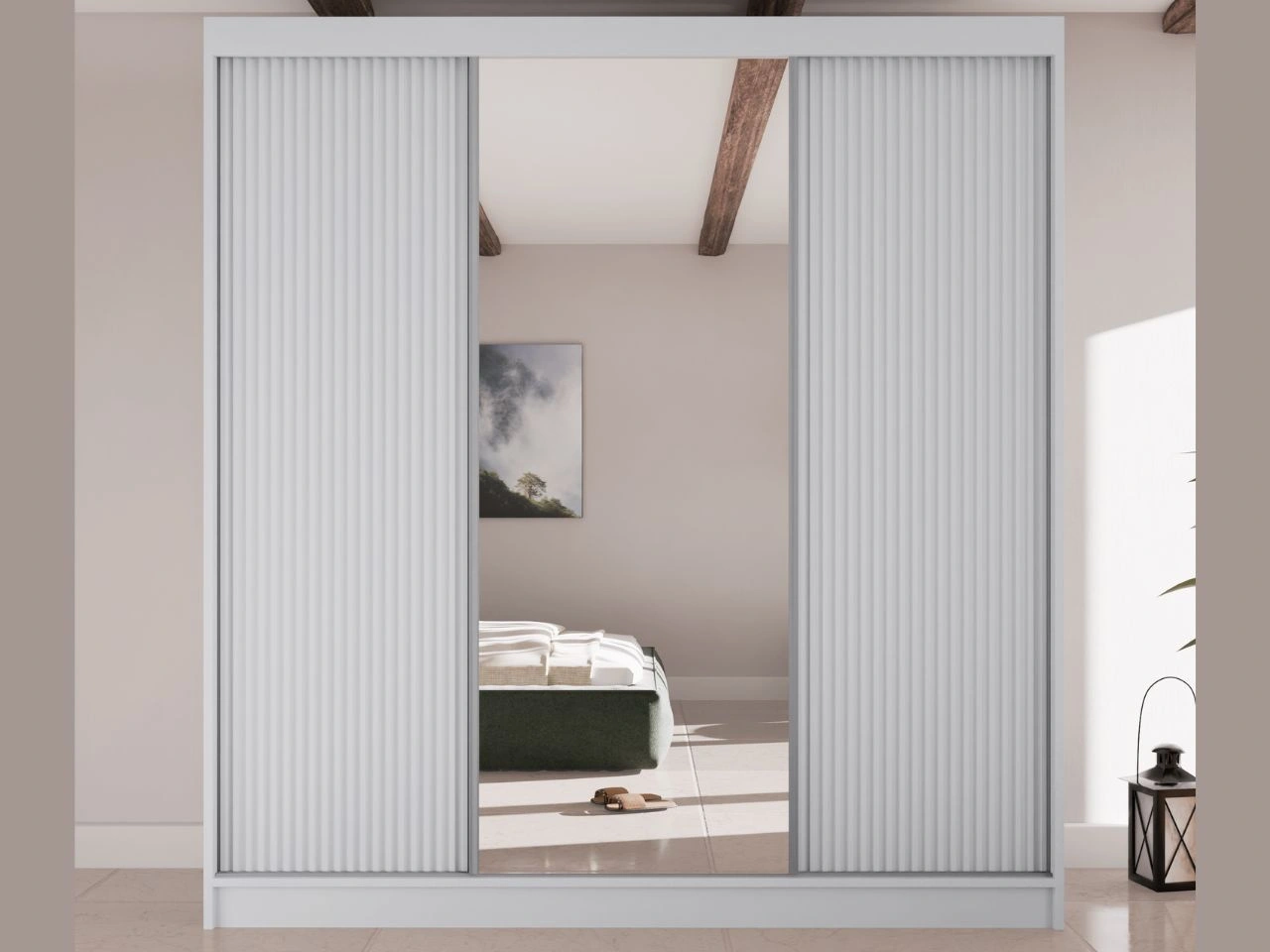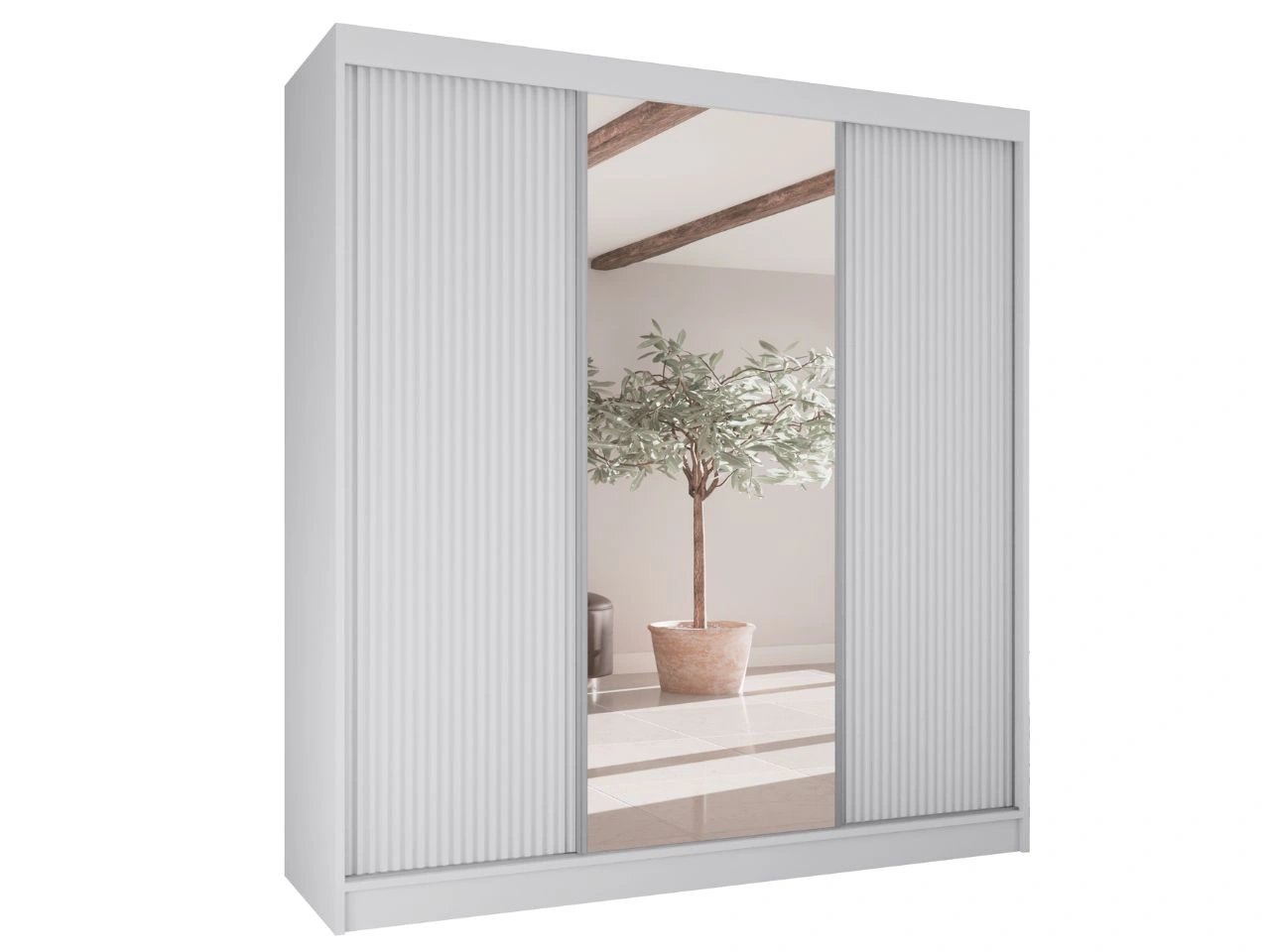 Szafa przesuwna z ryflowanym frontem i lustrem 200 cm Rivas Biała
