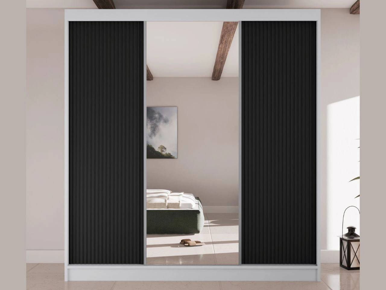 Szafa przesuwna z ryflowanym frontem i lustrem 200 cm Rivas Biała, Czarna
