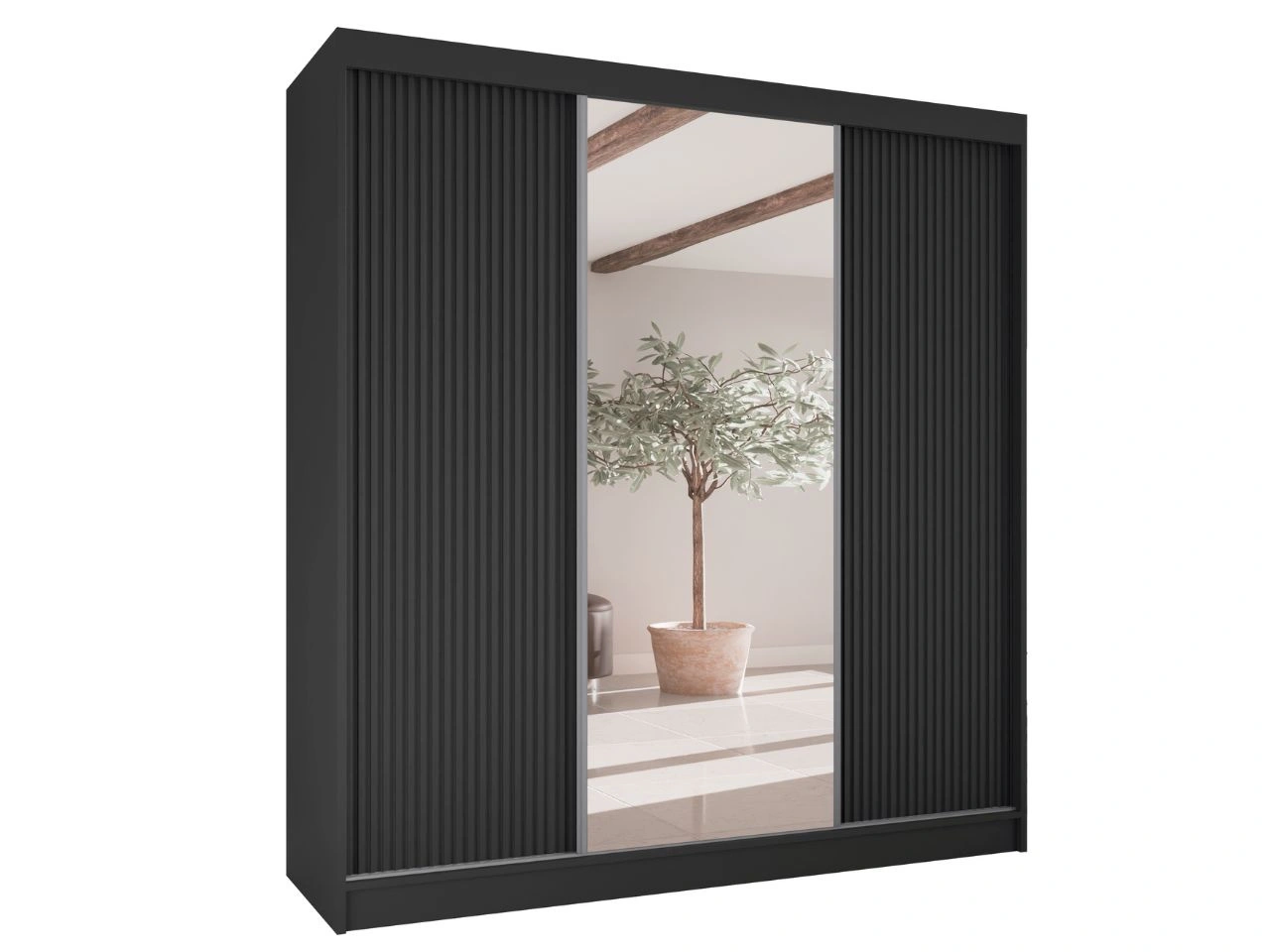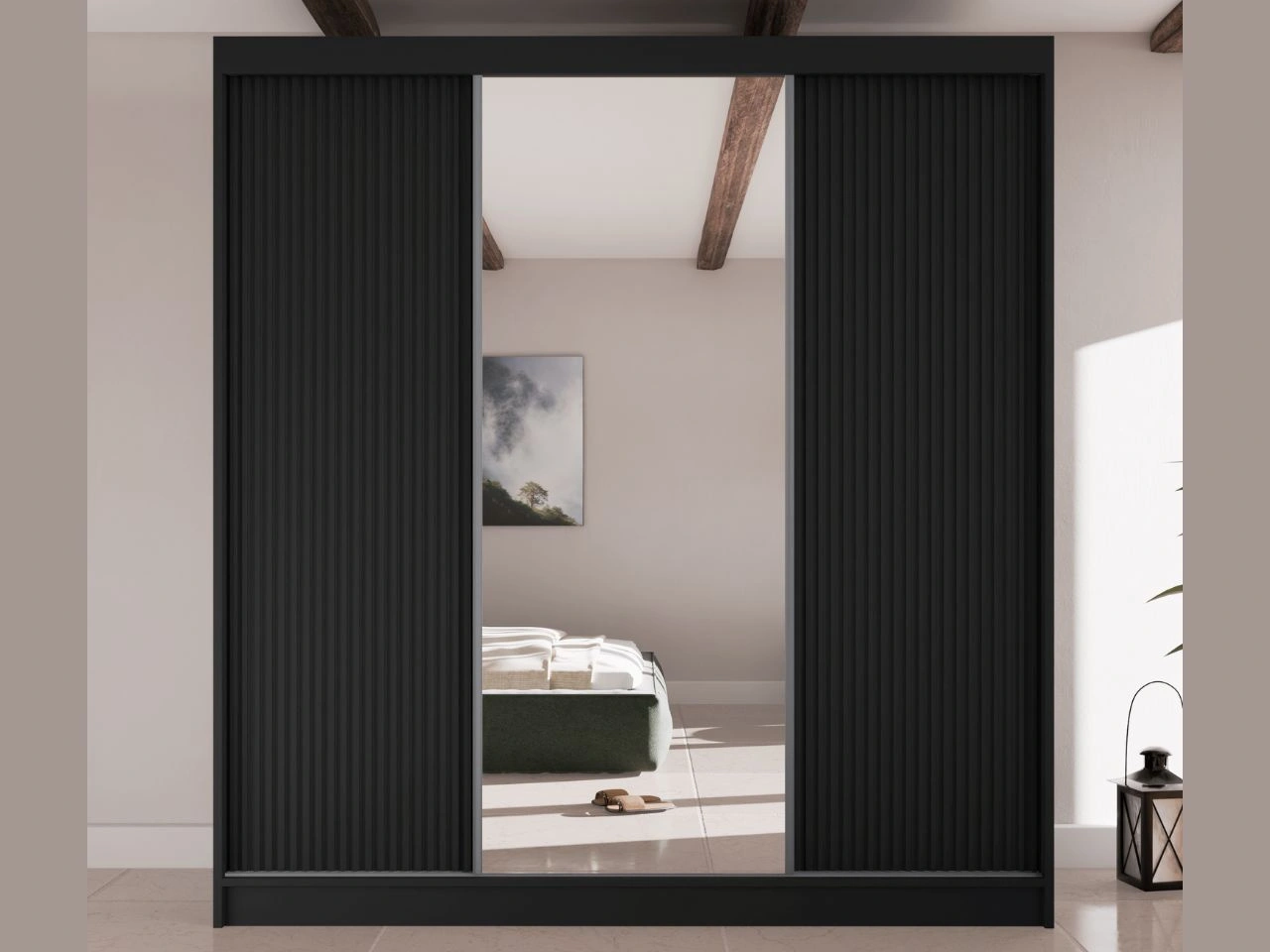 Szafa przesuwna z ryflowanym frontem i lustrem 200 cm Rivas Czarna