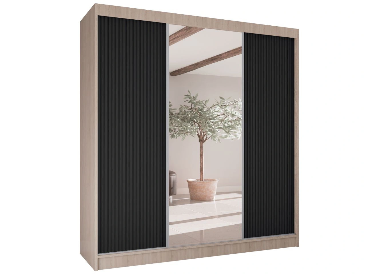 Szafa przesuwna z ryflowanym frontem i lustrem 200 cm Rivas Czarna, Biała