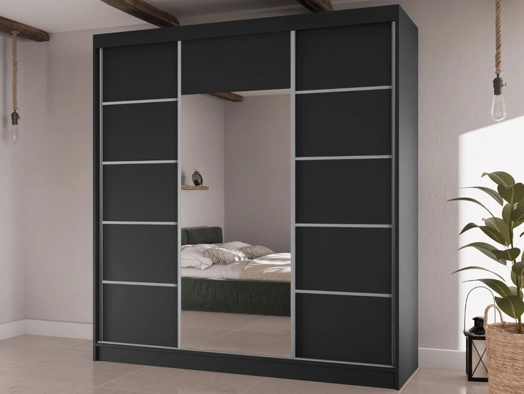 Szafa przesuwna z lustrem 200 cm Maia Czarna