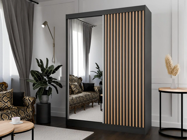 Szafa przesuwna z lustrem i lamelami 150 cm Loreto Czarna