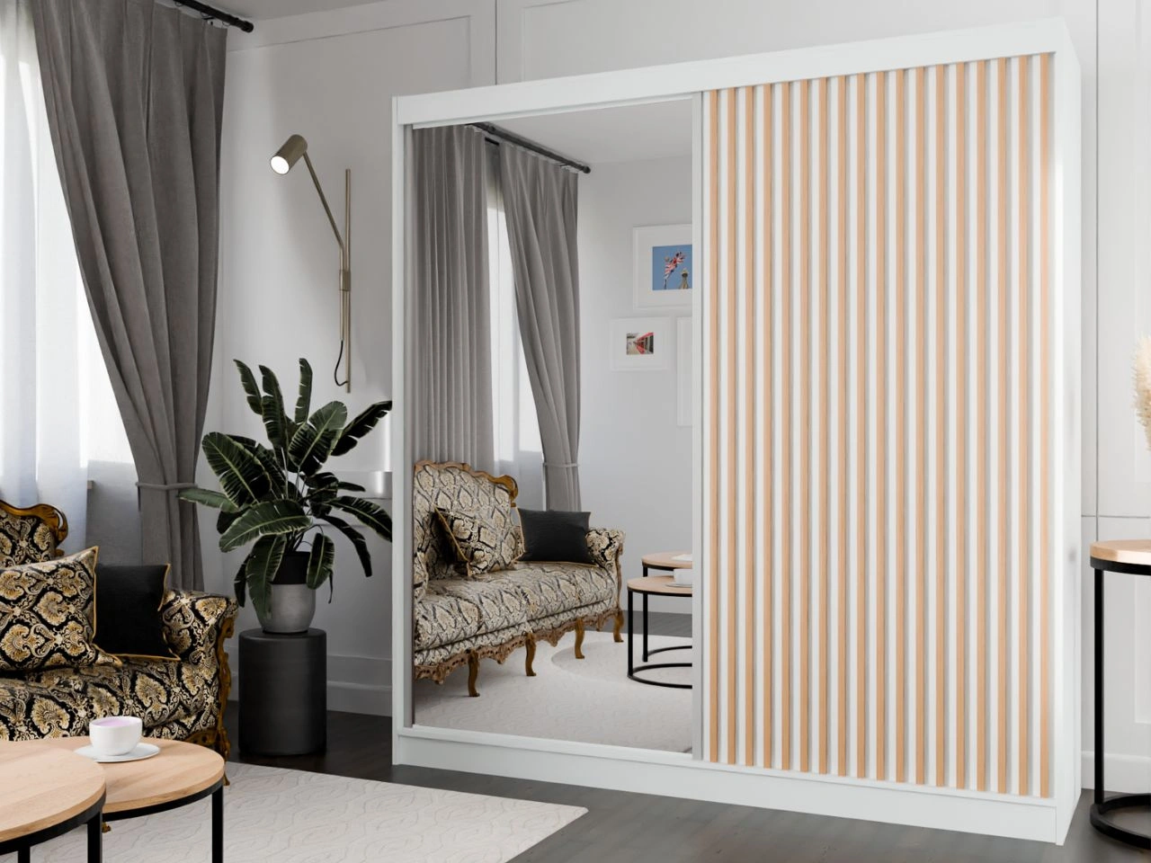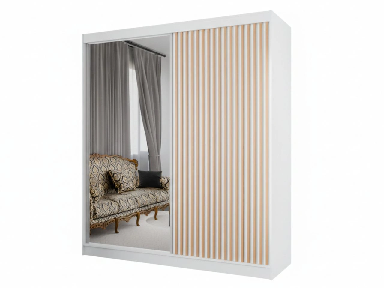 Szafa przesuwna z lustrem i lamelami 200 cm Loreto Biała