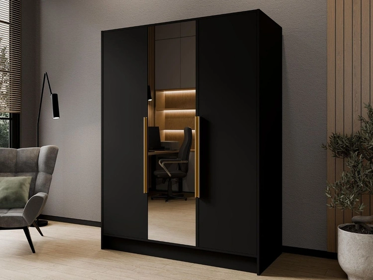 Szafa otwierana z lustrem 150 cm Lucca Czarna z złotymi uchwytami