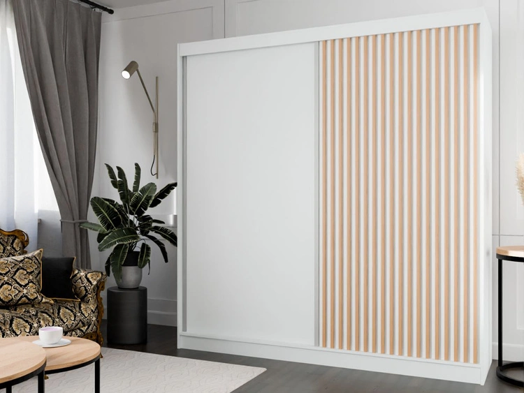 Szafa przesuwna z lamelami 200 cm Loreto Biała