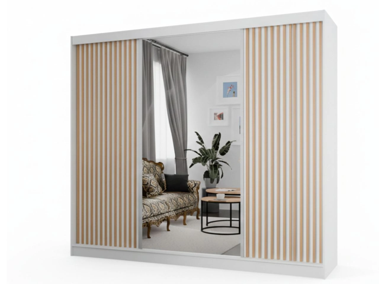 Szafa przesuwna z lustrem i lamelami 250 cm Loreto Biała