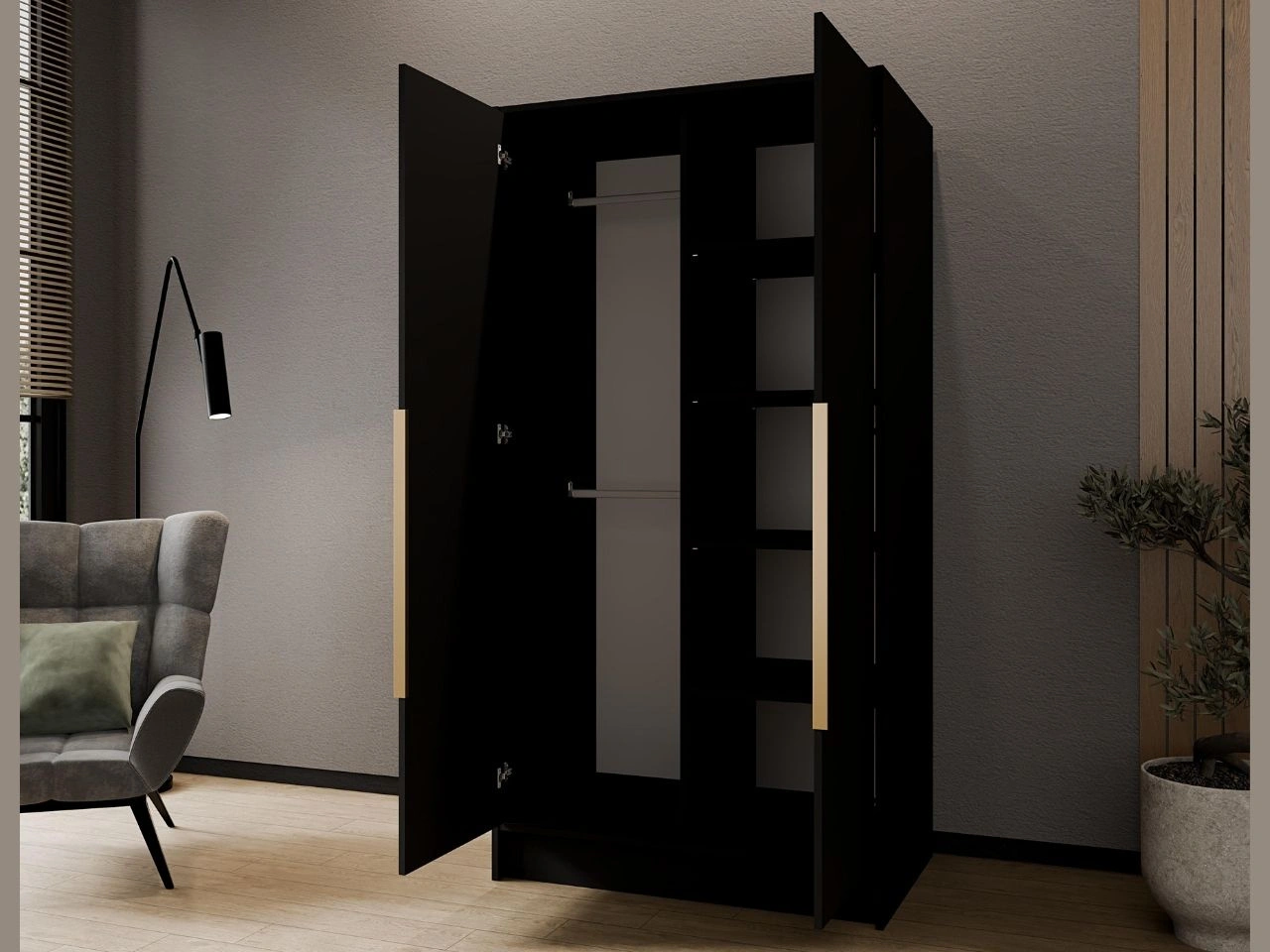 Szafa otwierana 100 cm Perugia Czarna z złotymi uchwytami
