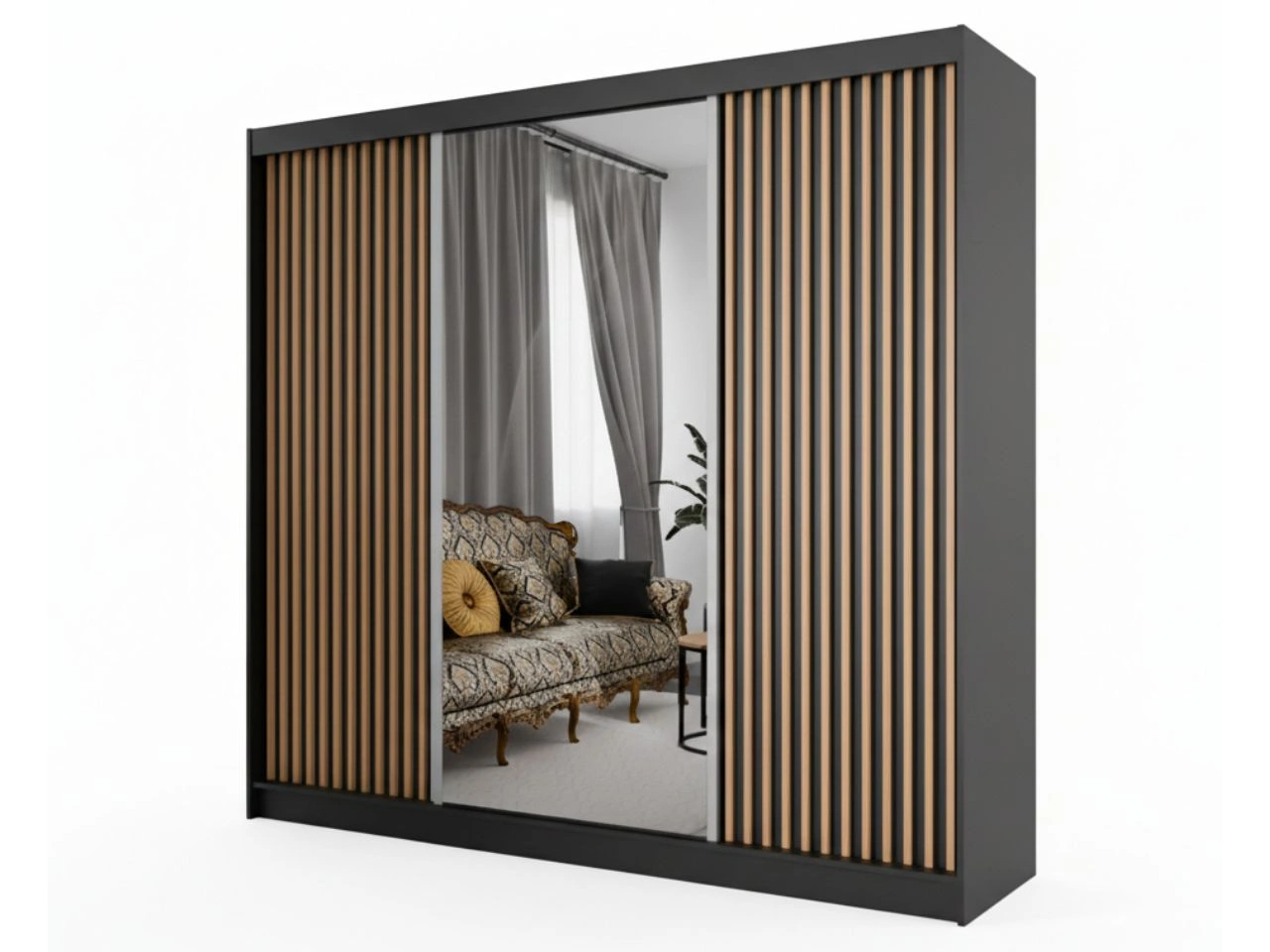 Szafa przesuwna z lustrem i lamelami 250 cm Loreto Czarna