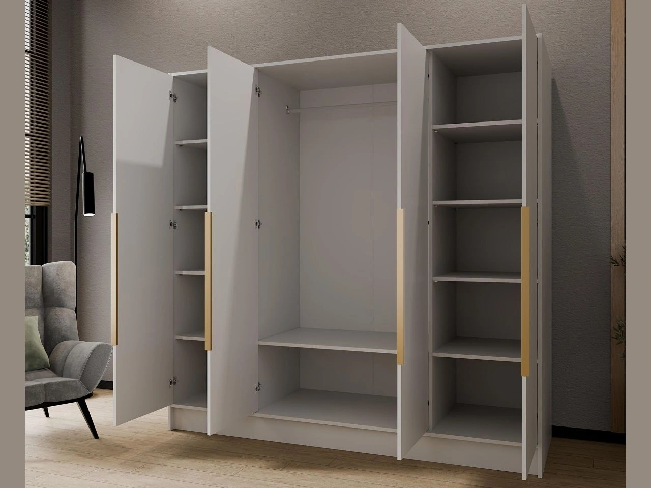 Szafa otwierana 200 cm Perugia Biała z złotymi uchwytami