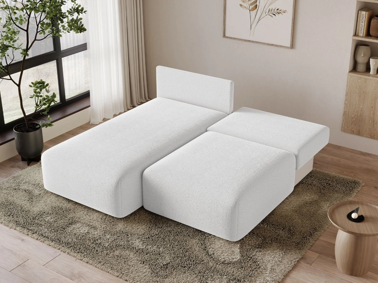 Narożnik L Prawy z funkcją spania i pojemnikiem Ronni Biały