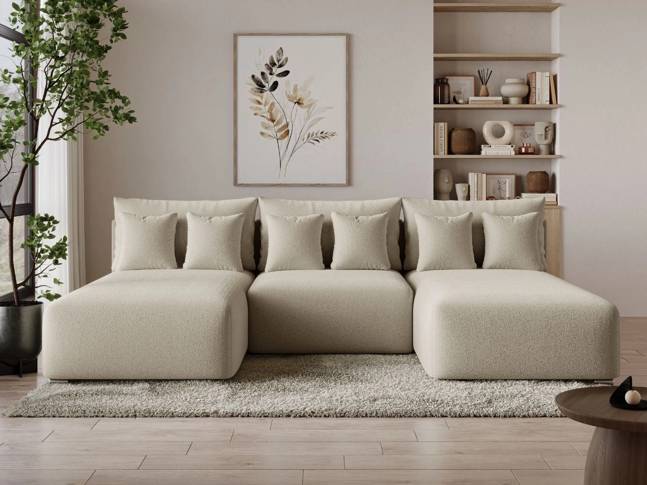 Dobierasz do: Narożnik U z funkcją spania i pojemnikiem Ronni Beżowy
