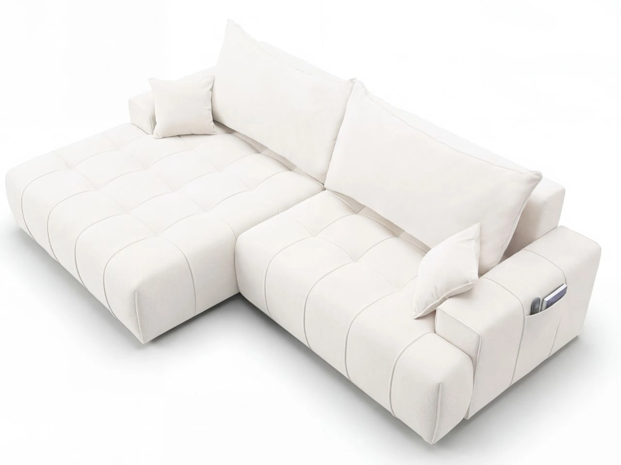 Narożnik L z funkcją spania i pojemnikiem Tulio lewy kremowy