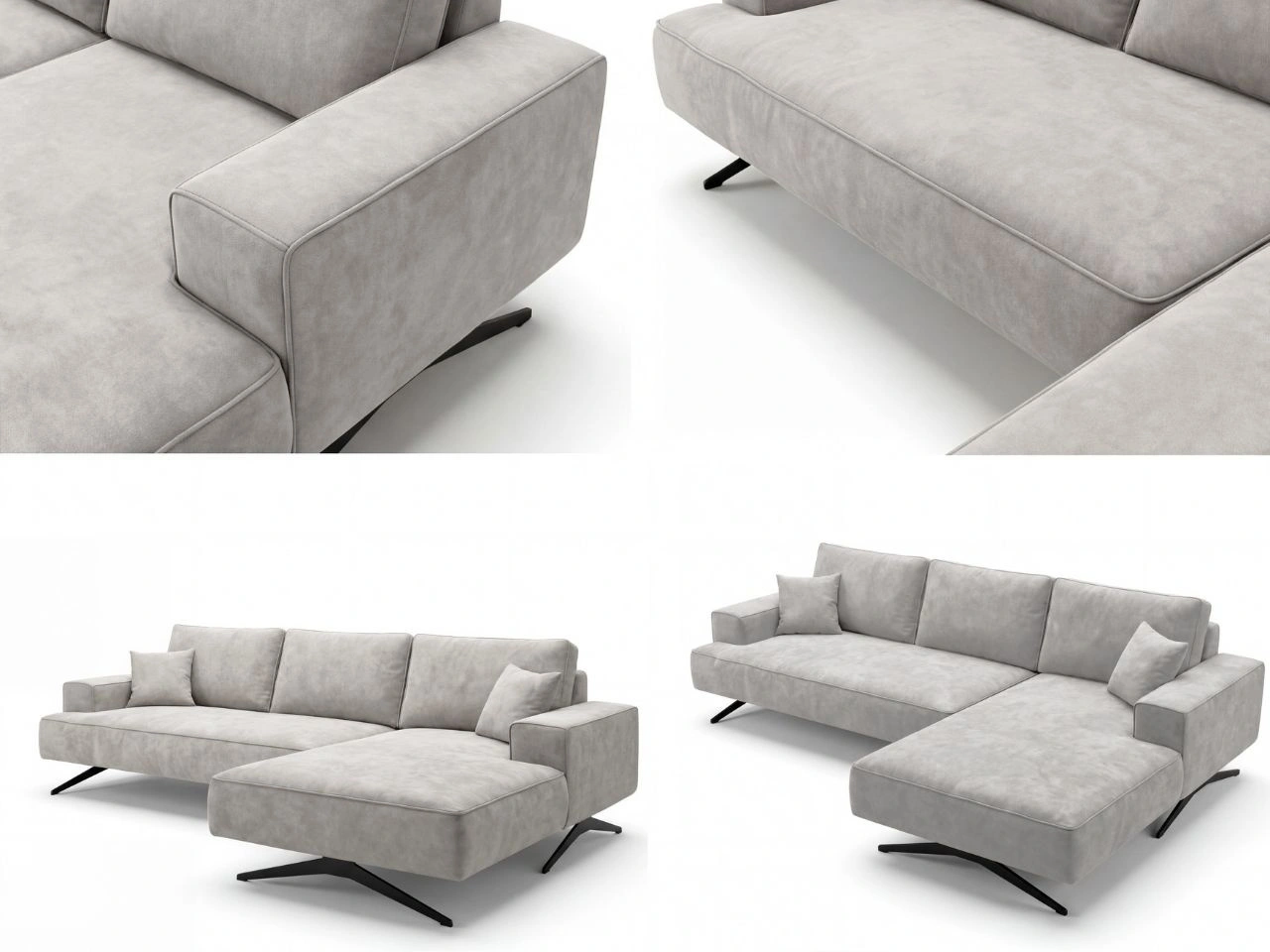 Narożnik L Prawy na metalowych nóżkach Leto szary
