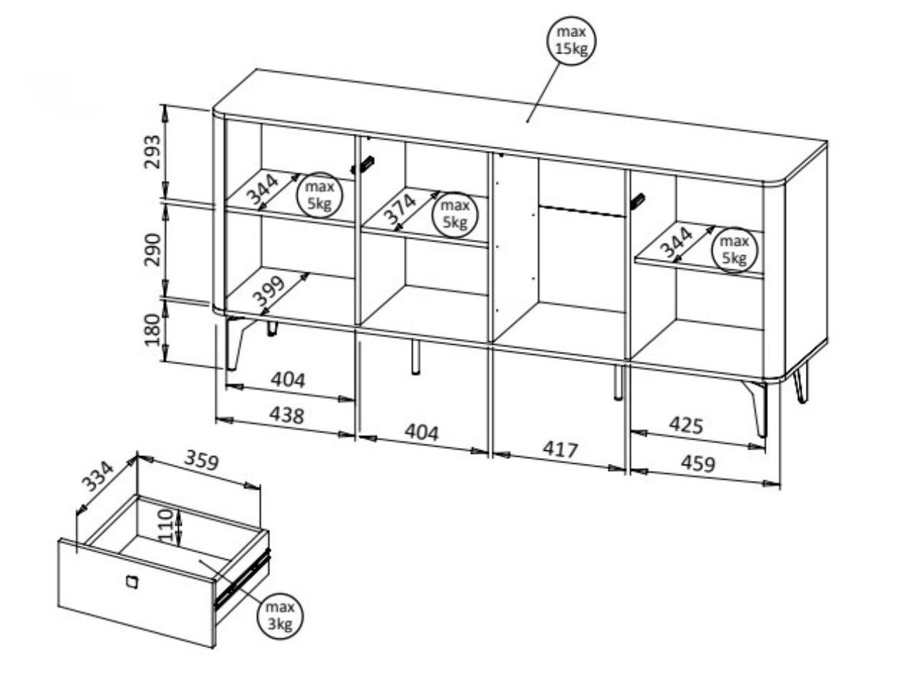 • Szuflady na prowadnicach kulkowych L350