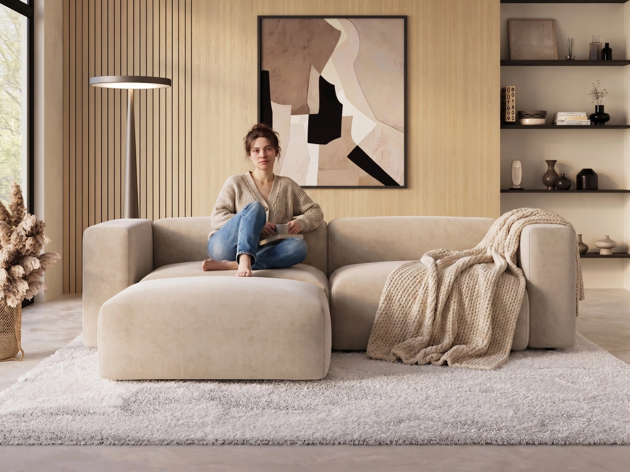 Wolnostojąca konstrukcja sprawia, że narożnik Landi świetnie prezentuje się z każdej strony i może zostać ustawiony zarówno przy ścianie, jak i w centralnej części salonu. To model łączący elegancję z codzienną wygodą użytkowania.