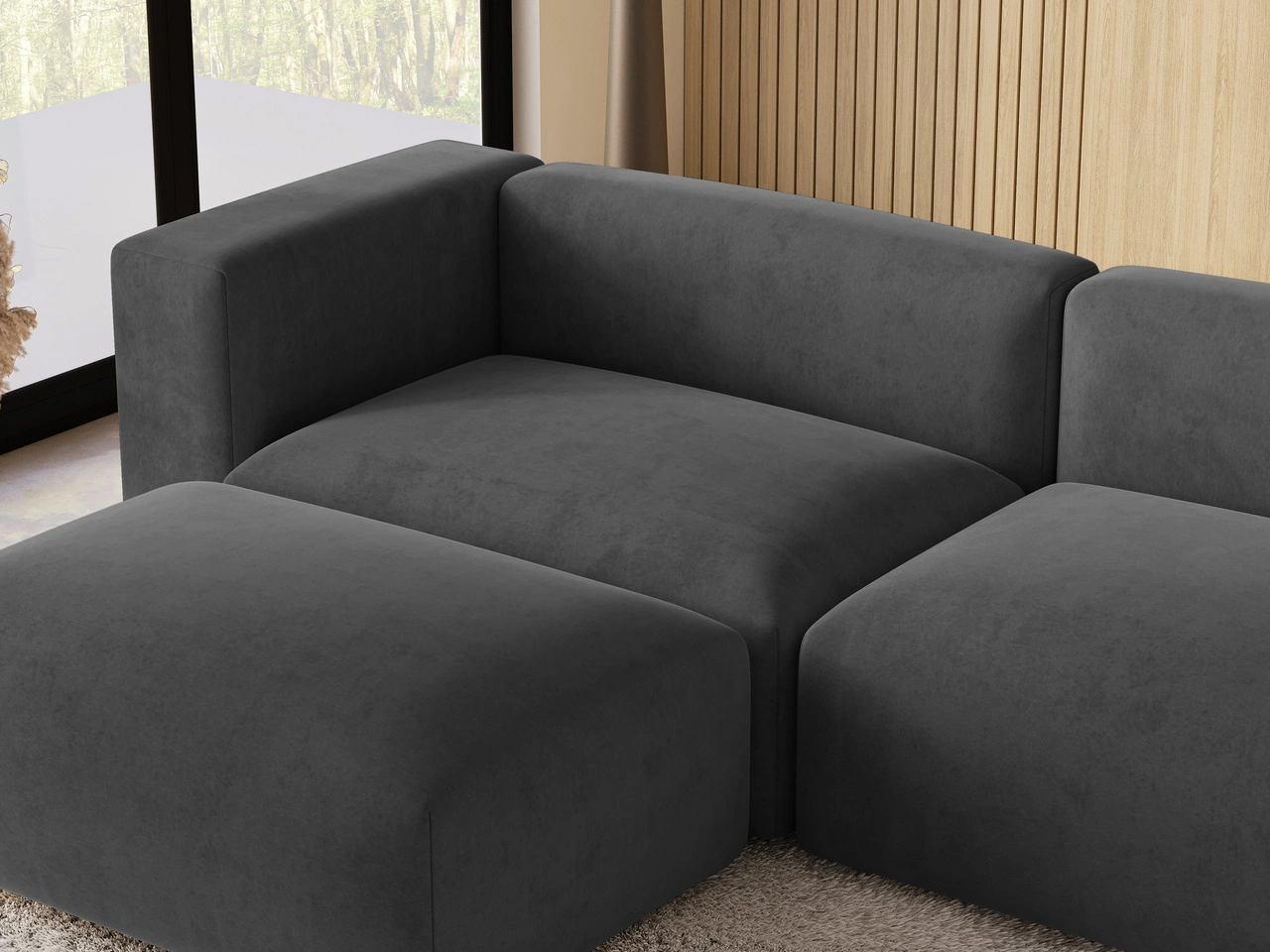 Wolnostojąca konstrukcja sprawia, że narożnik Landi świetnie prezentuje się z każdej strony i może zostać ustawiony zarówno przy ścianie, jak i w centralnej części salonu. To model łączący elegancję z codzienną wygodą użytkowania.