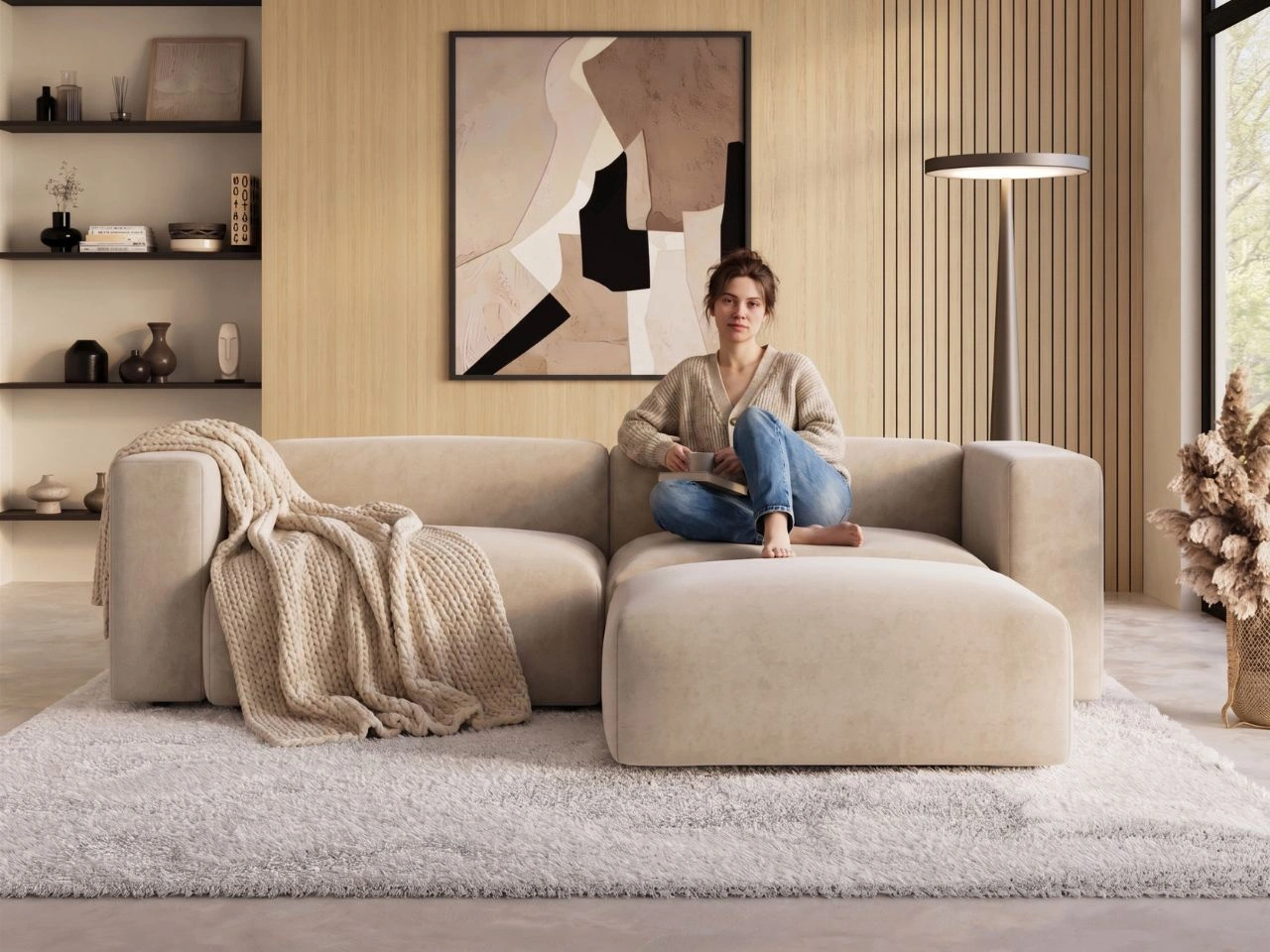 Wolnostojąca konstrukcja sprawia, że narożnik Landi świetnie prezentuje się z każdej strony i może zostać ustawiony zarówno przy ścianie, jak i w centralnej części salonu. To model łączący elegancję z codzienną wygodą użytkowania.