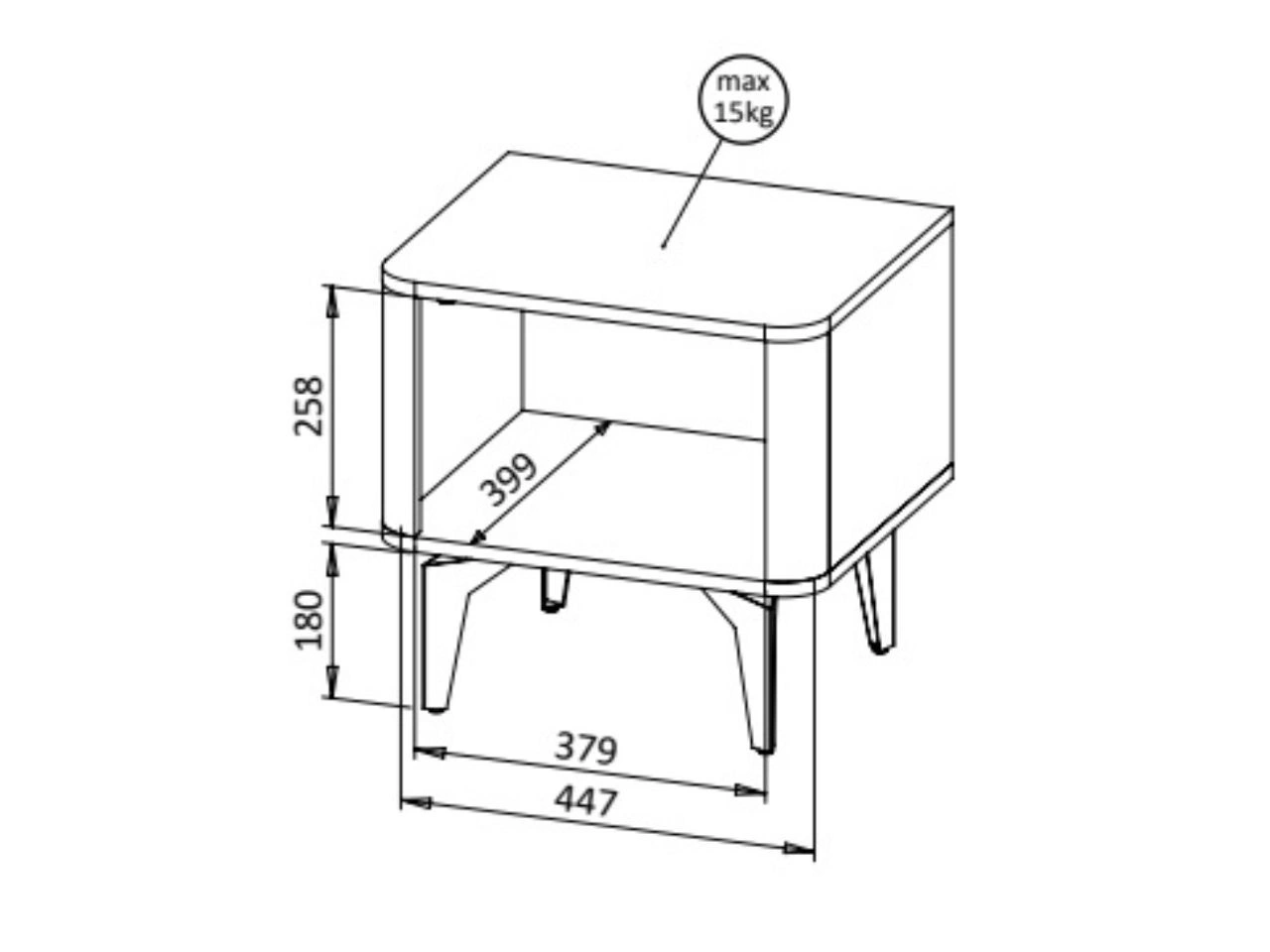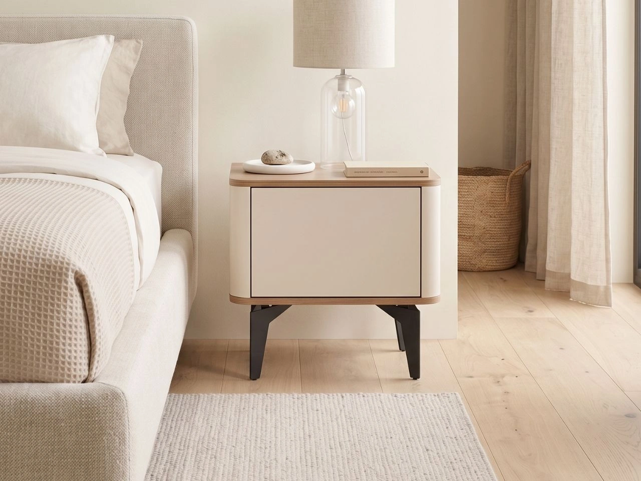 Szafka nocna Arelis to stylowy i praktyczny mebel o nowoczesnej formie, który doskonale sprawdzi się zarówno w sypialni, jak i jako subtelny element uzupełniający aranżację wnętrza. Jej prosta, elegancka bryła łączy w sobie ponadczasowy design z funkcjonalnością, wpisując się w aktualne trendy wnętrzarskie.
