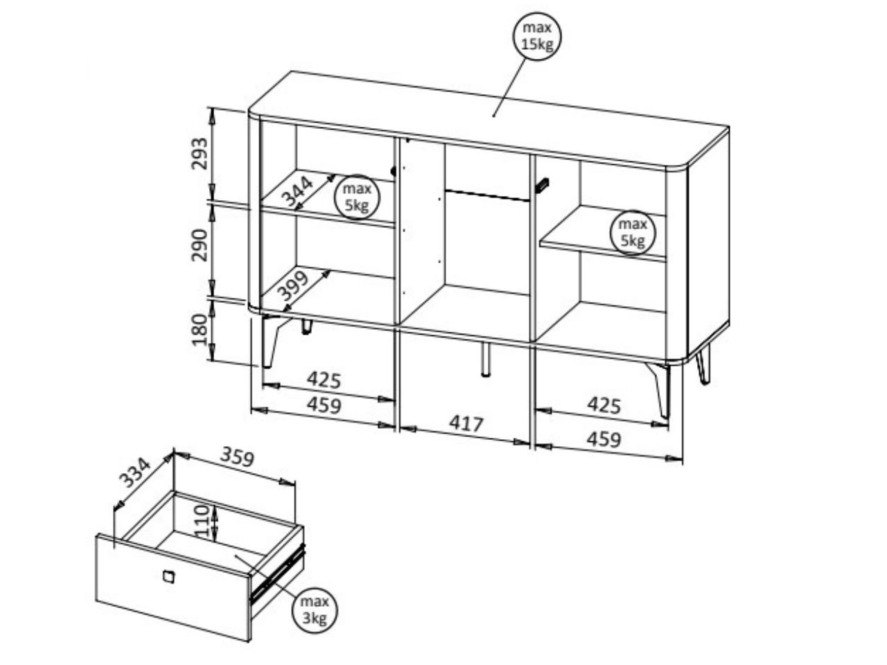 - Szuflady na prowadnicach kulkowych